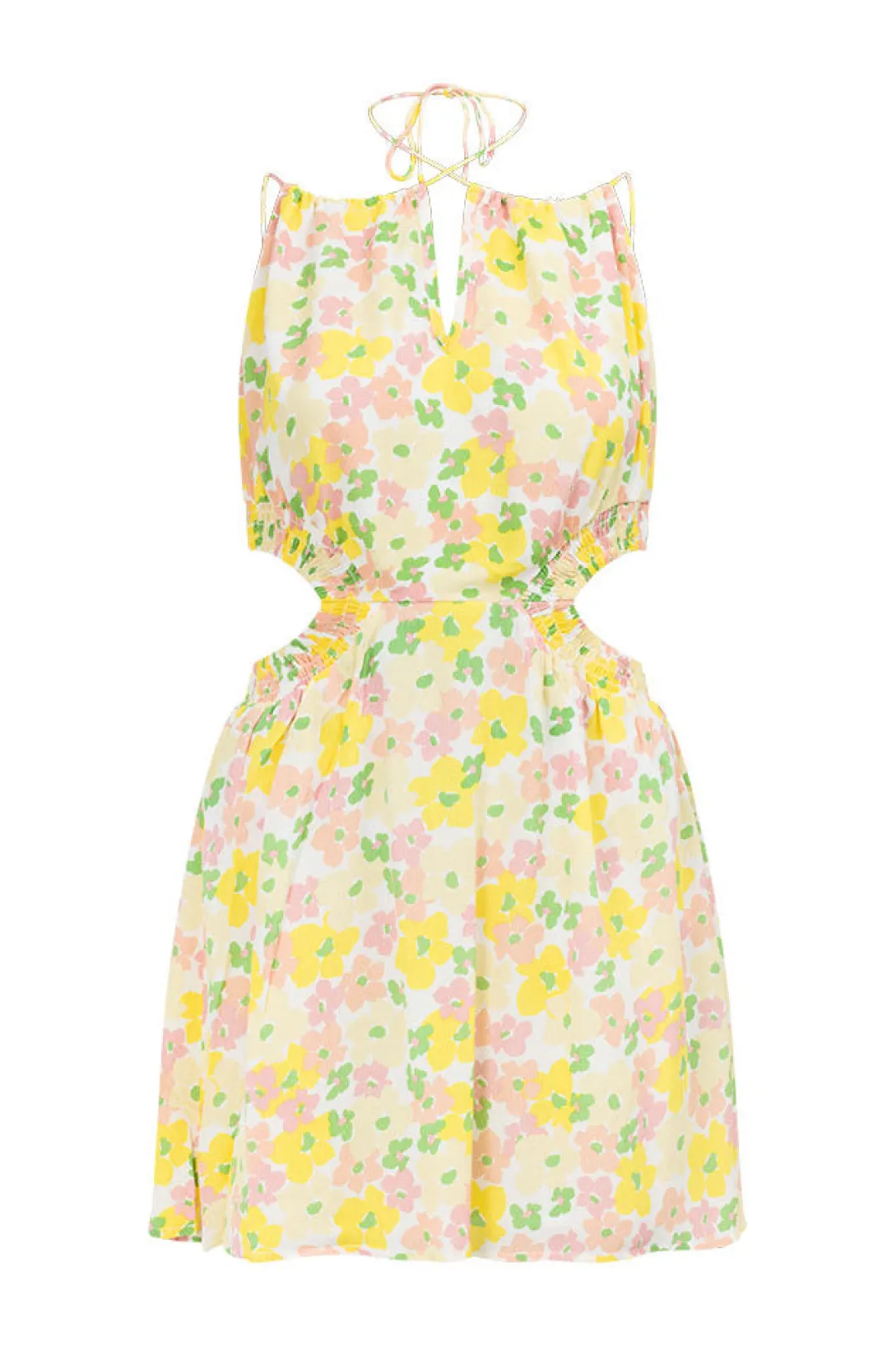 *This Is A Final Sale Item* The Perfect Spring Dress! The Bristol Dress Is Made From A Viscose Crepe Fabric With Our Exclusive Primrose Floral Print. It Features A Thin Draw Neckline, Keyhole Cutout At Centre Bust, Cutouts At Waist With Shirred Elastic Detailing And A Flouncy Skirt. Pair With A Pair Of Chunky Slides For A Super Cute Weekend Look! Designed Exclusively By Sabo.