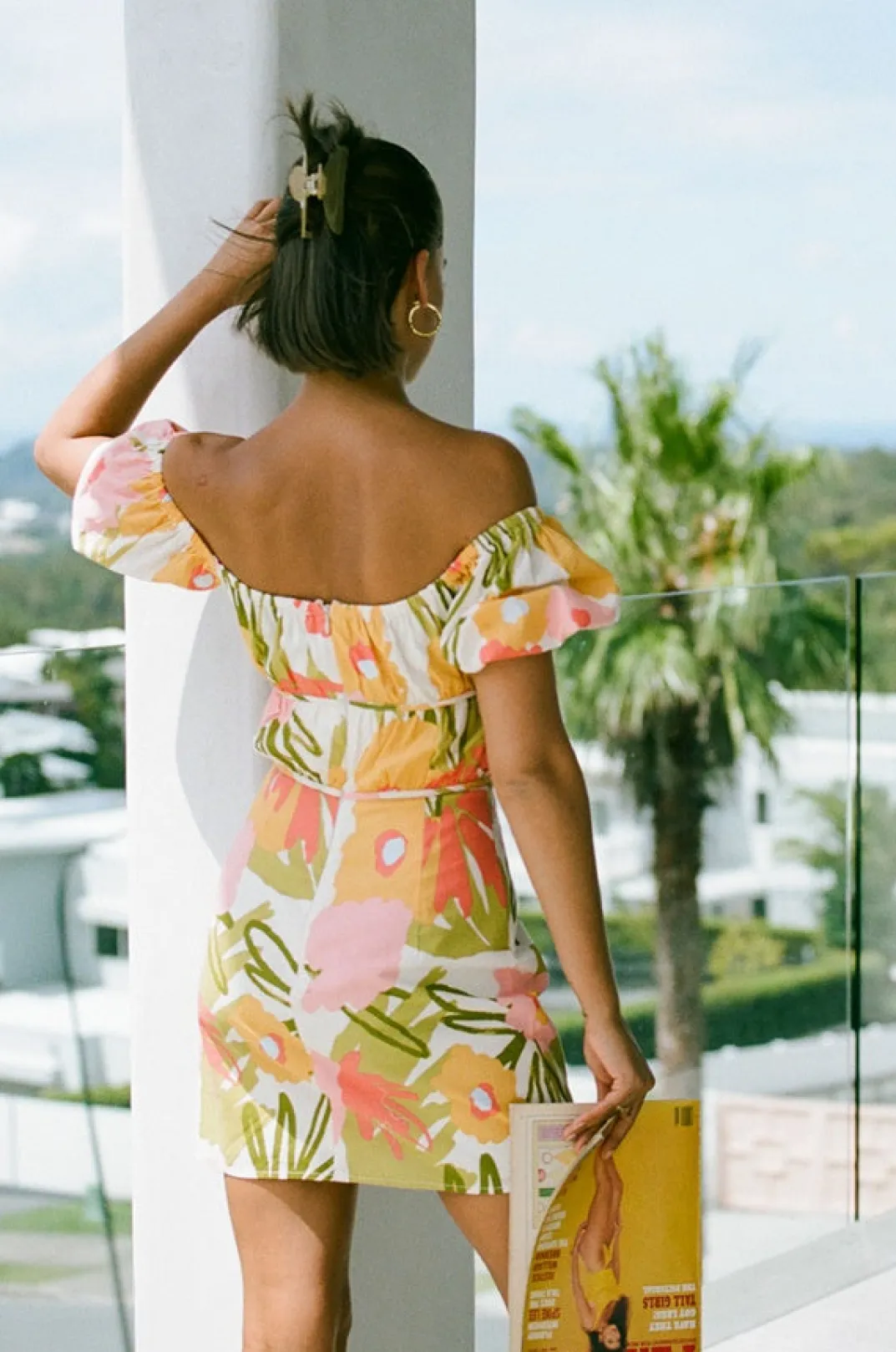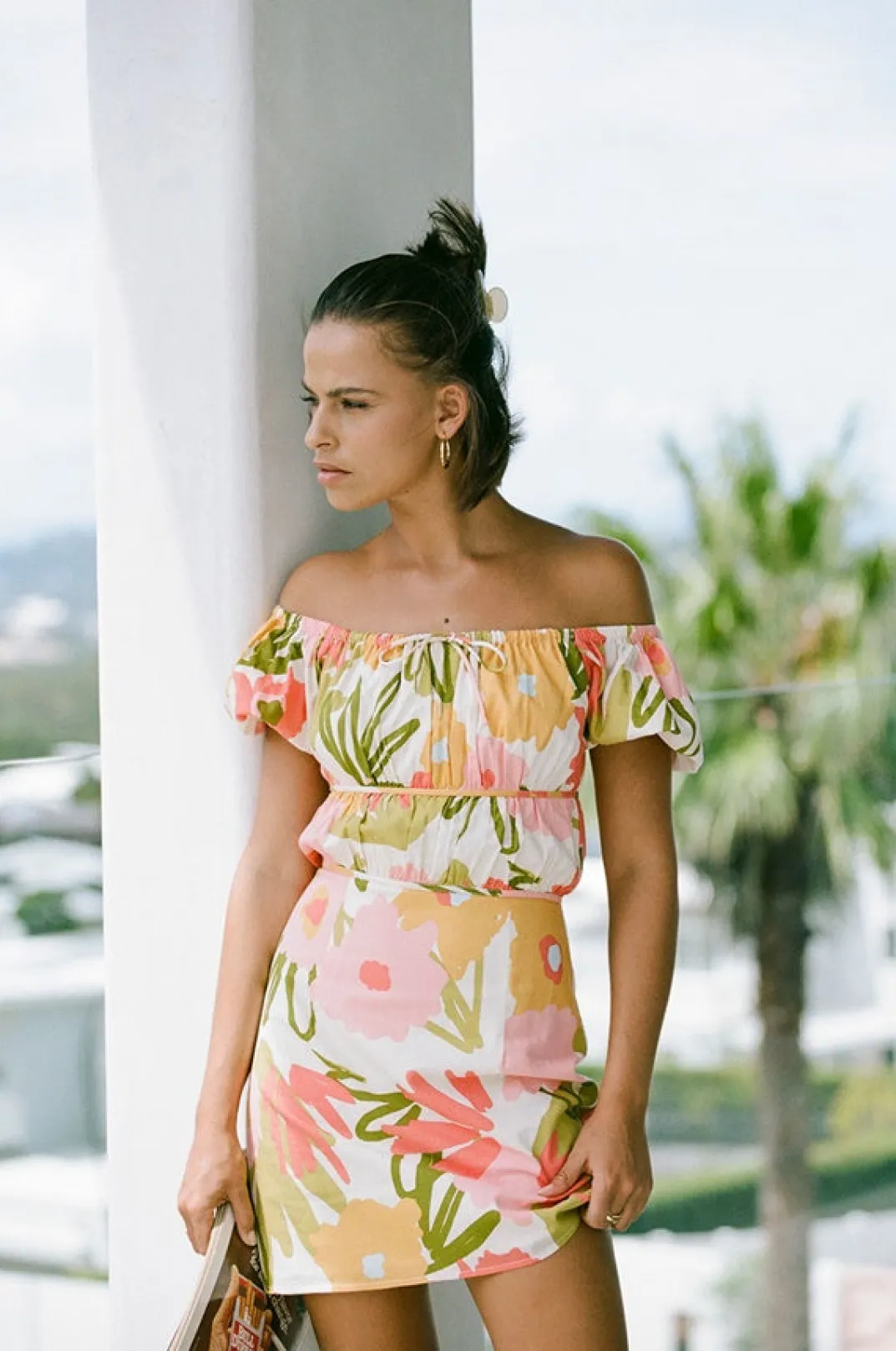 *This Is A Final Sale Item* The Retro Inspired Rory Dress Is Made From A High Quality Natural Cotton Fabric With Our Exclusive Smudge Floral Print. It Is An Off Shoulder Style Featuring A Tie At Centre Neckline, Short Puff Sleeves And Bind Detailing Across Waist. Dress It Up With The Strappy Ramos Heels For Your Next Event! Designed Exclusively By Sabo.