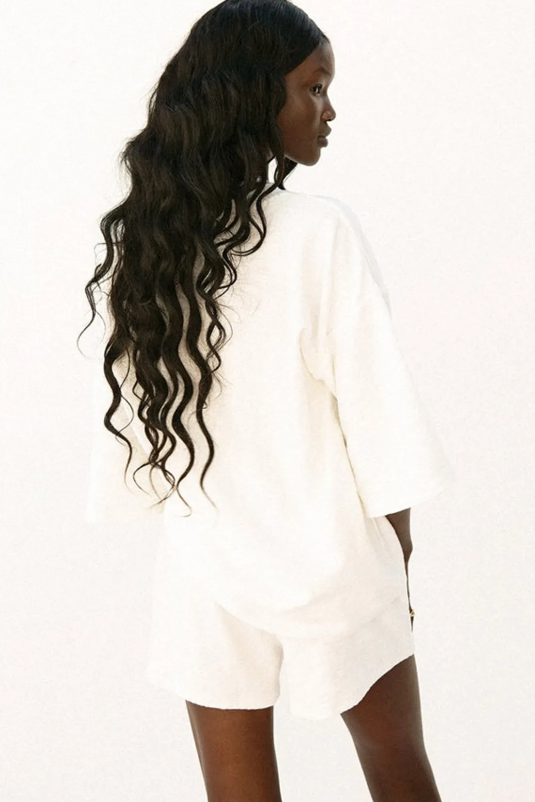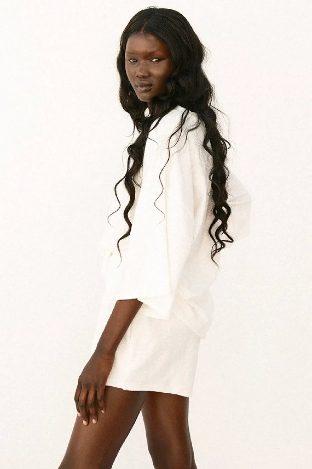 *This Is A Final Sale Item* Your Favourite Basic Style In A Lush Fabric! The Wanderer Shorts Are Made From A Textured Lightweight Fabric In An Off White Hue. They Are A High Waisted Style Featuring An Elasticated Waist And High-Low Hems. Get The Look And Pair With The Wanderer Tee, White Rattan Backpack And Mira Slides! Exclusively Designed By Sabo.