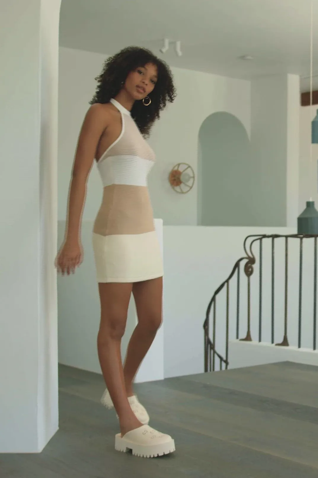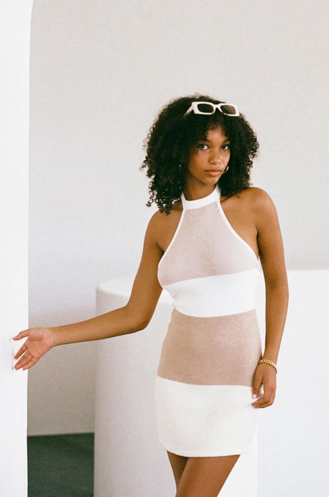 *Back In Stock* The ‘It’ Dress Has Landed! The Auri Knit Dress Is Made From A Knitted Fabric In Neutral Hues. It Is A Halter Style Featuring A Super Low Back And Contrast Tan And Cream Panels Throughout. Complete The Look With The Mini Bead Handle Bag And Roxo Strappy Sandals! Exclusively Designed By Sabo.