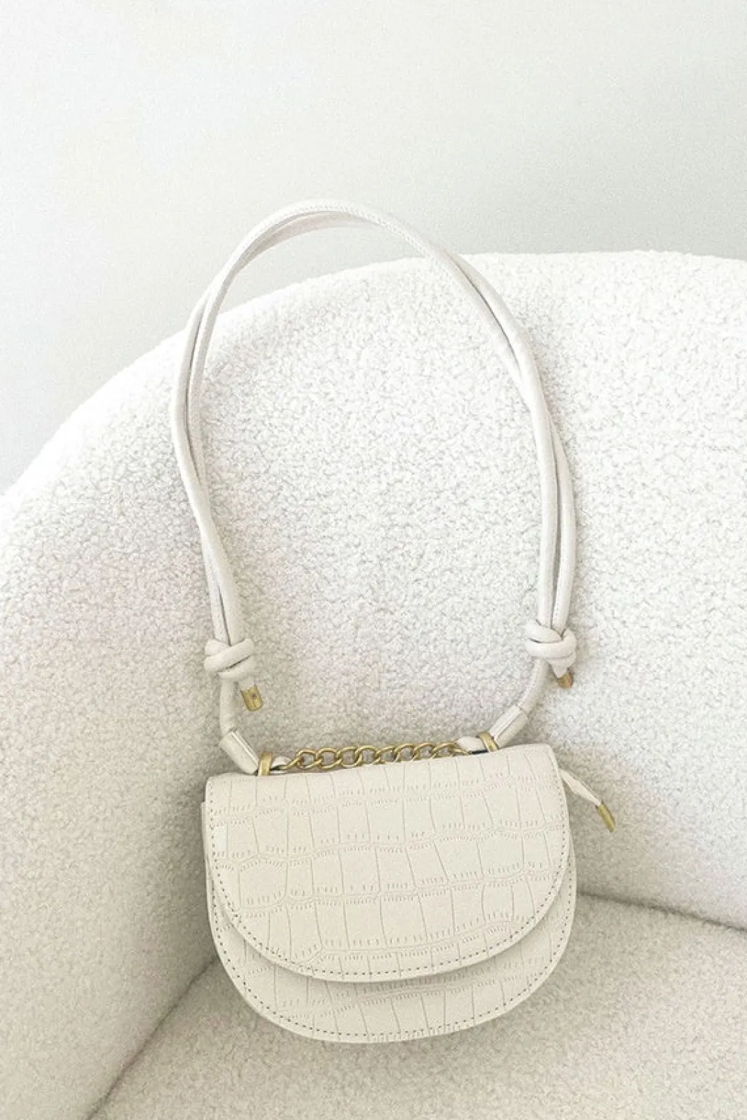 *This Is A Final Sale Item And Cannot Be Returned. See Our Returns Policy Here The Super Chic Lima Saddle Bag Is Made From A Vegan Croc Skin In A Cream Hue. It Features A Double Strap With Knotted Detailing And Vintage Style Gold Toned Hardware.