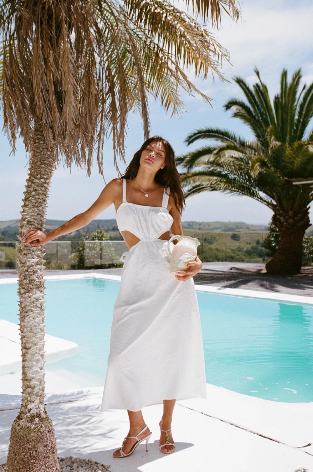 For Our Lovers Of Neutrals And Open Back Pieces! The Akayla Dress Is Made From A High Quality Lightweight Fabric In White. It Is A Midi Style Featuring An Open Back With Tie Details, Straight Neckline, Cutouts At Waist And A Flouncy Skirt. Add A Pop Of Colour With Your Heels And Bag! Designed Exclusively By Sabo.