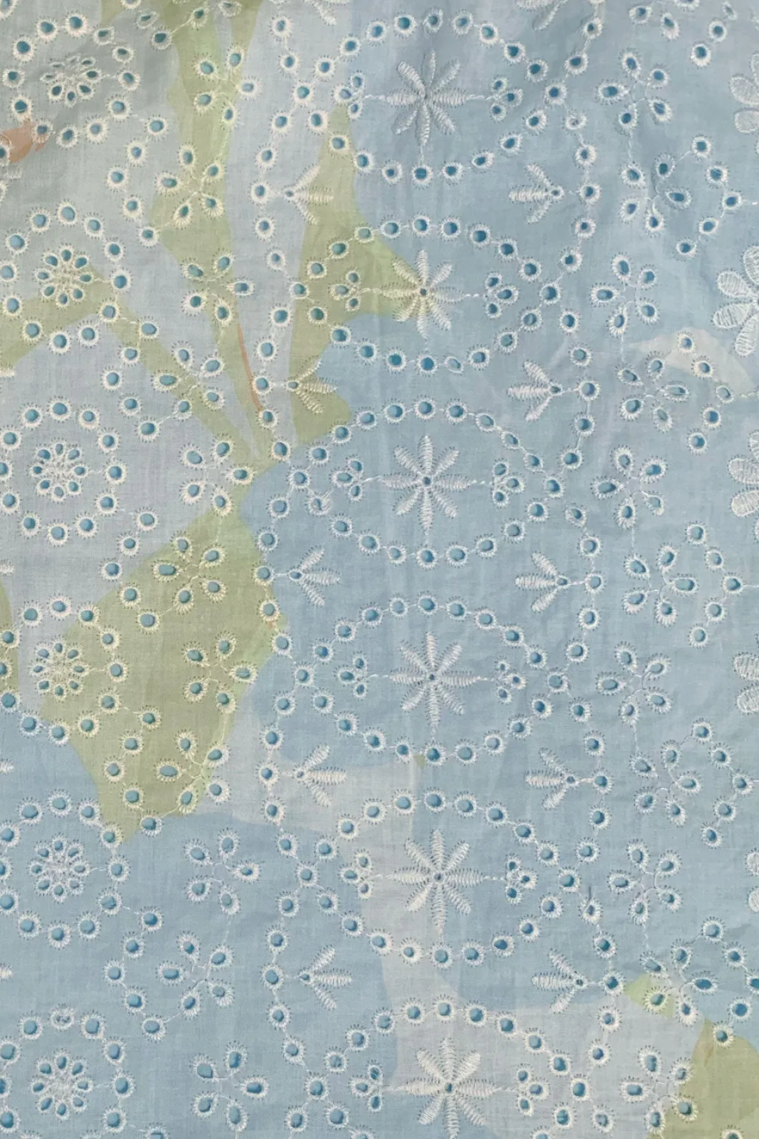 Introducing Our Brand New Printed Broiderie Fabric Featuring Our Exclusive Dusty Blue Lilly Print. The Alessanda Cutout …