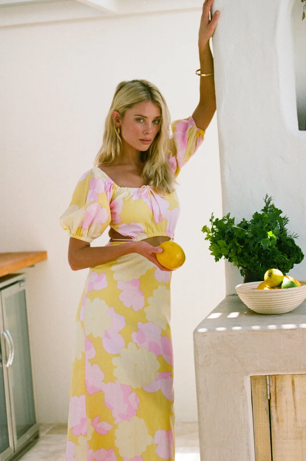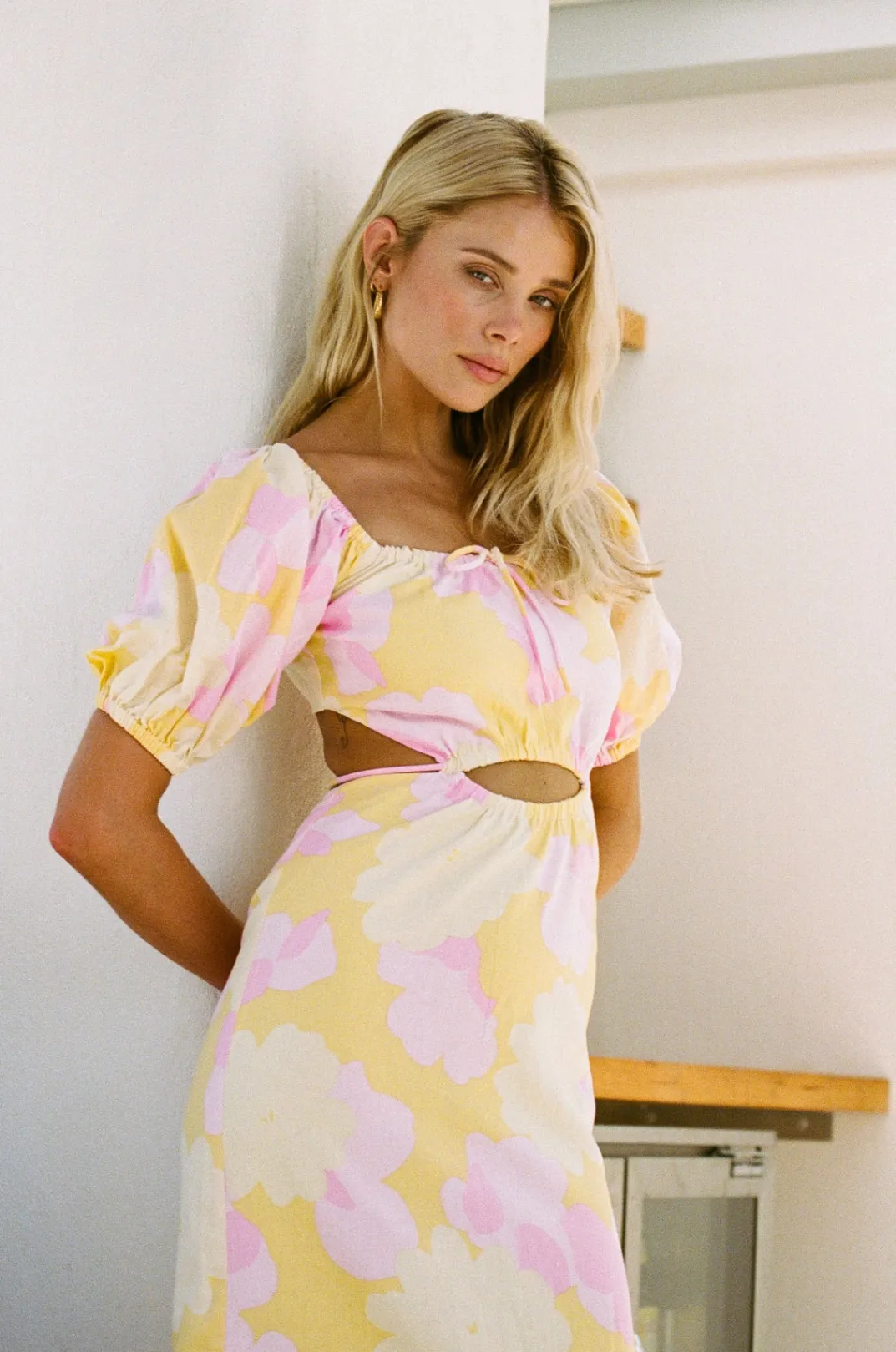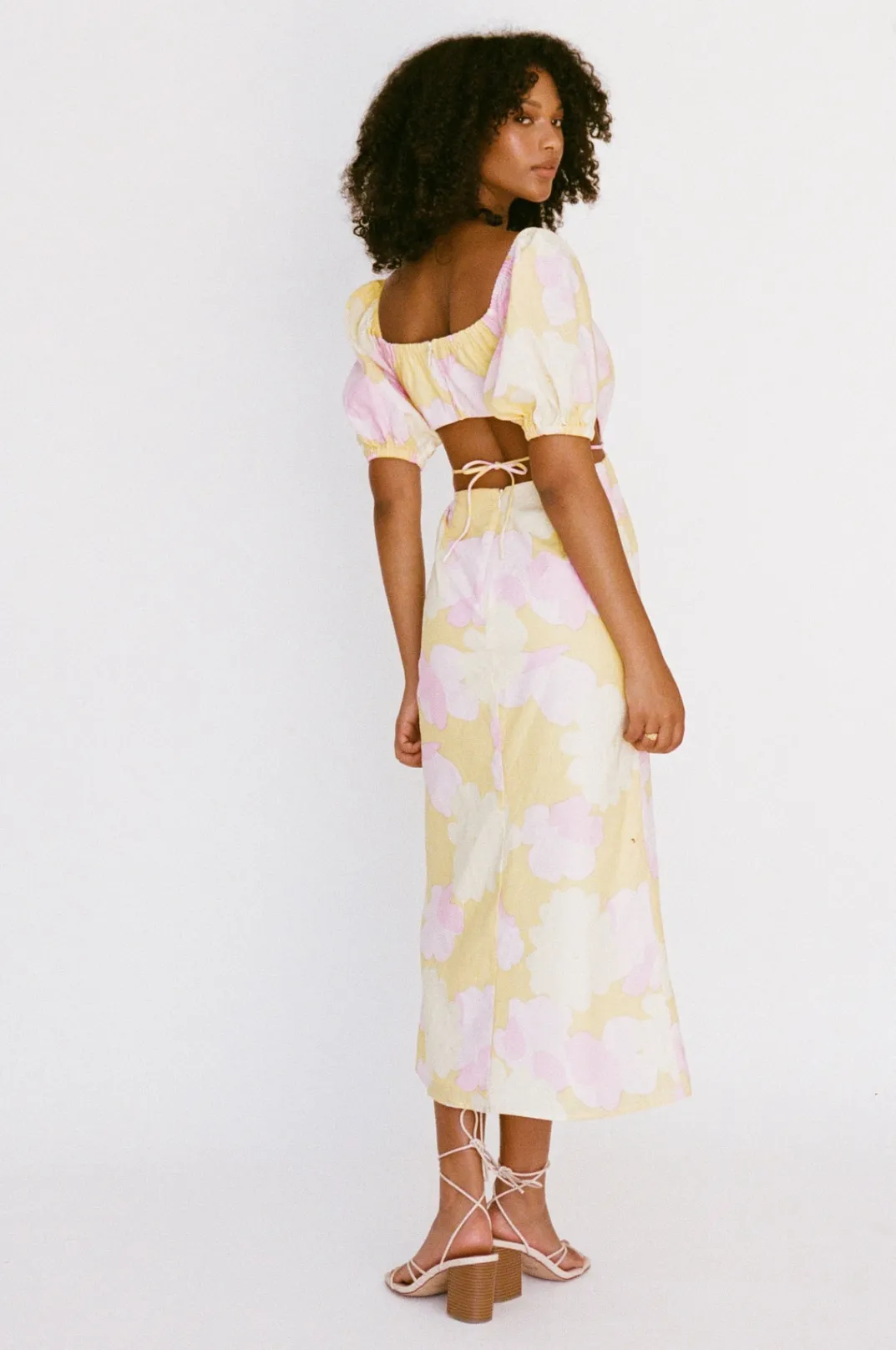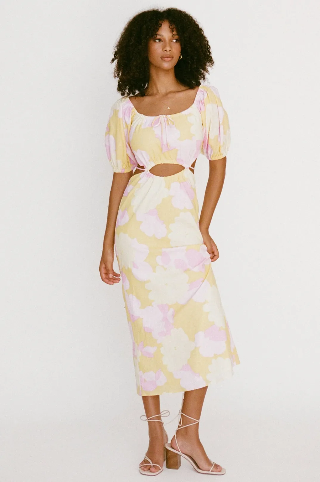 *This Is A Final Sale Item And Cannot Be Returned. See Our Returns Policy Here Perfect For The Party Season, The Araba Midi Dress Is Made From A High Quality Natural Linen Cotton Blend Fabric With Our Exclusive Flutter Print. It Features Short Puff Sleeves, Draw Tie At Centre Bust And Cutouts At Waist With Tie Detail. Styling Tip:Can Be Worn On Or Off Shoulder! Designed Exclusively By Sabo.