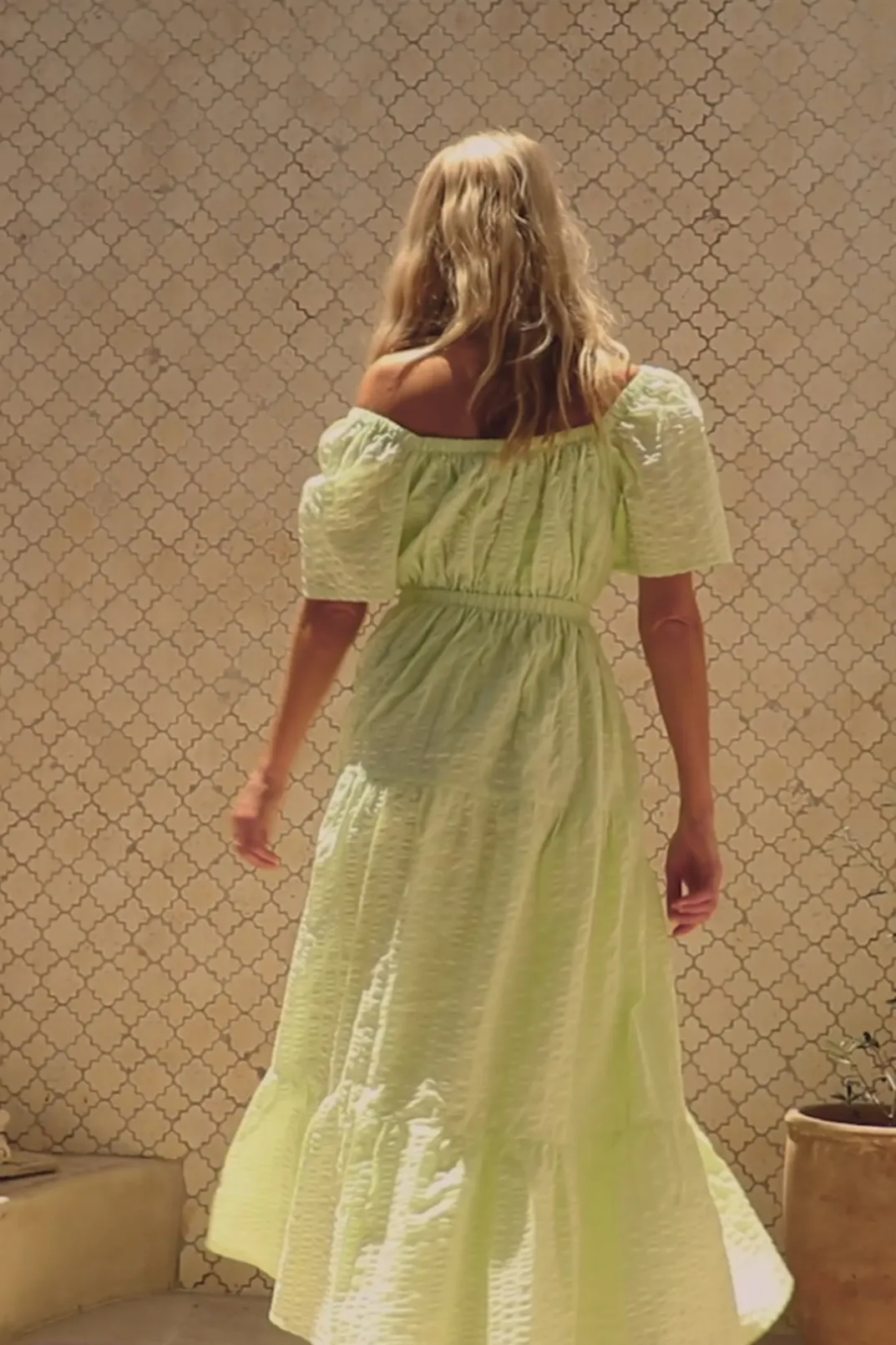 Exude Vacation Vibes In The Stunning Armelia Maxi Dress, Made From A Natural Cotton Textured Seersucker Fabric In A Gree…