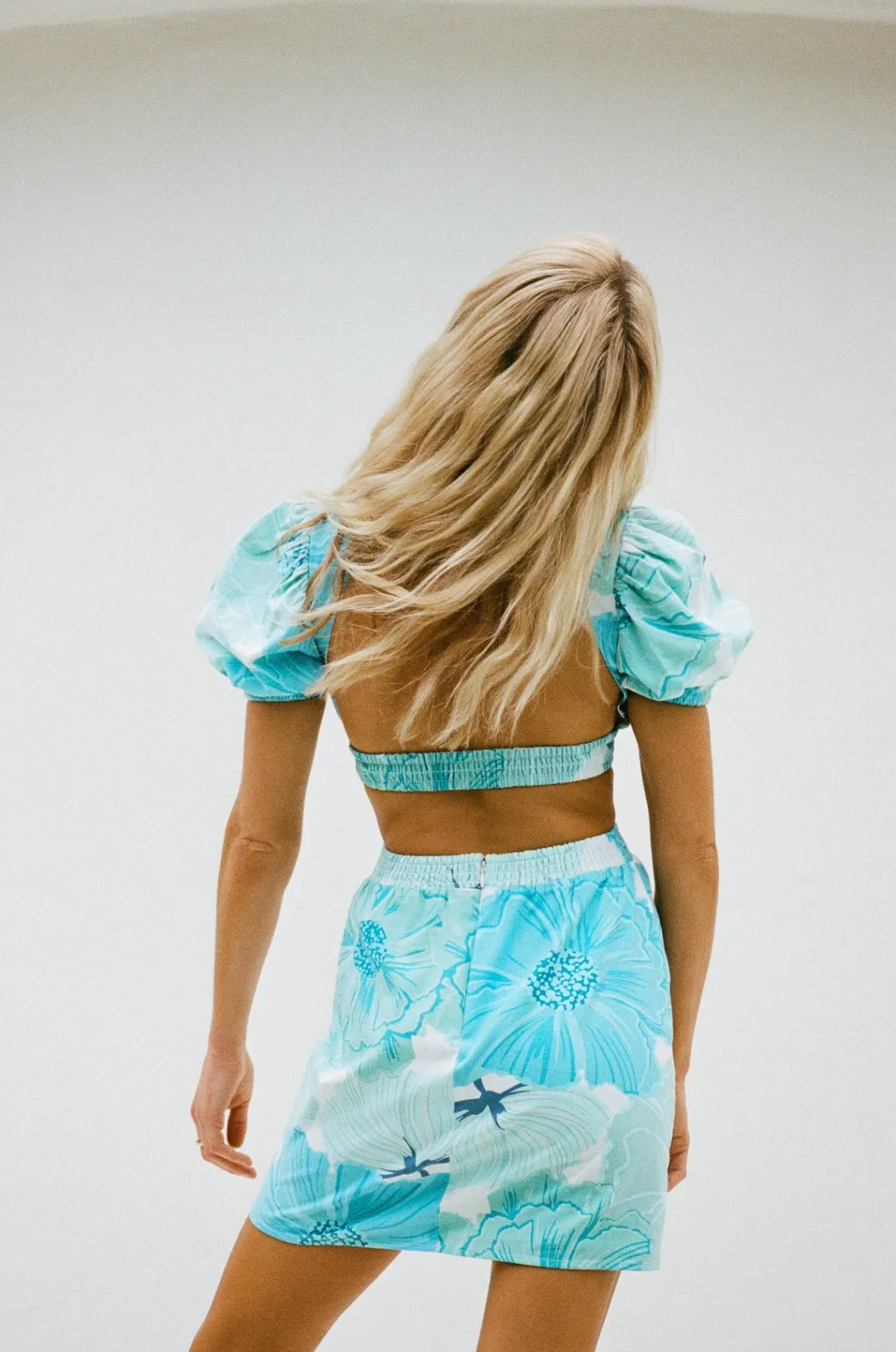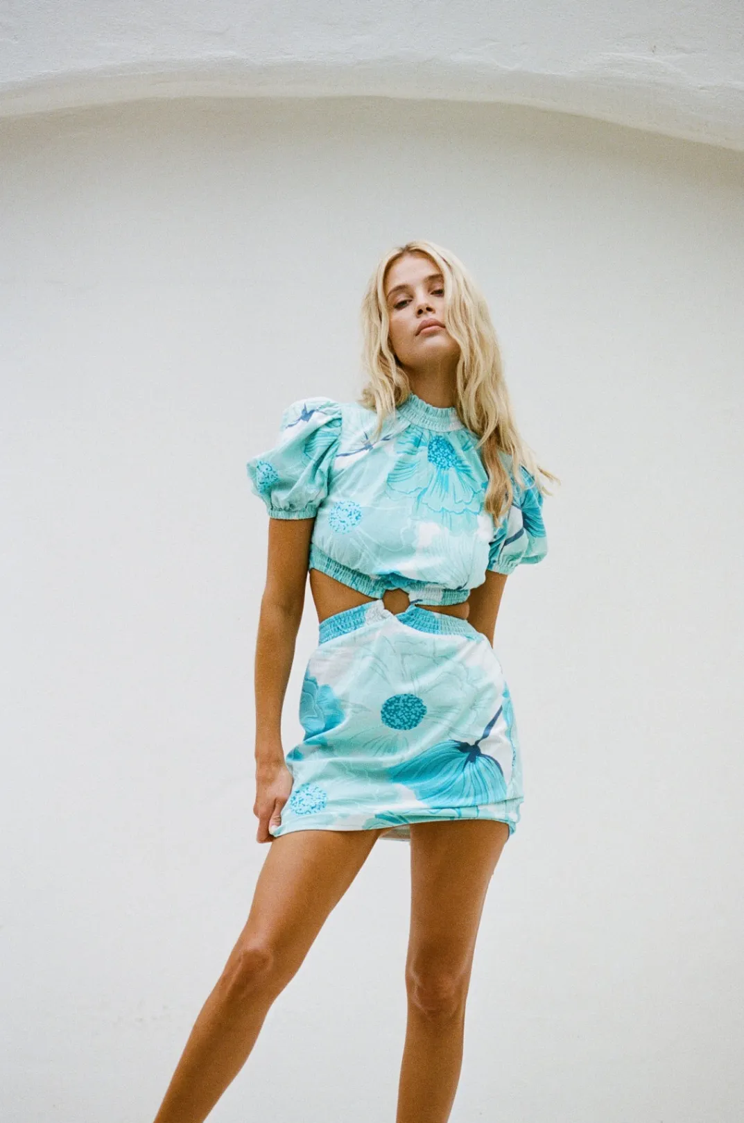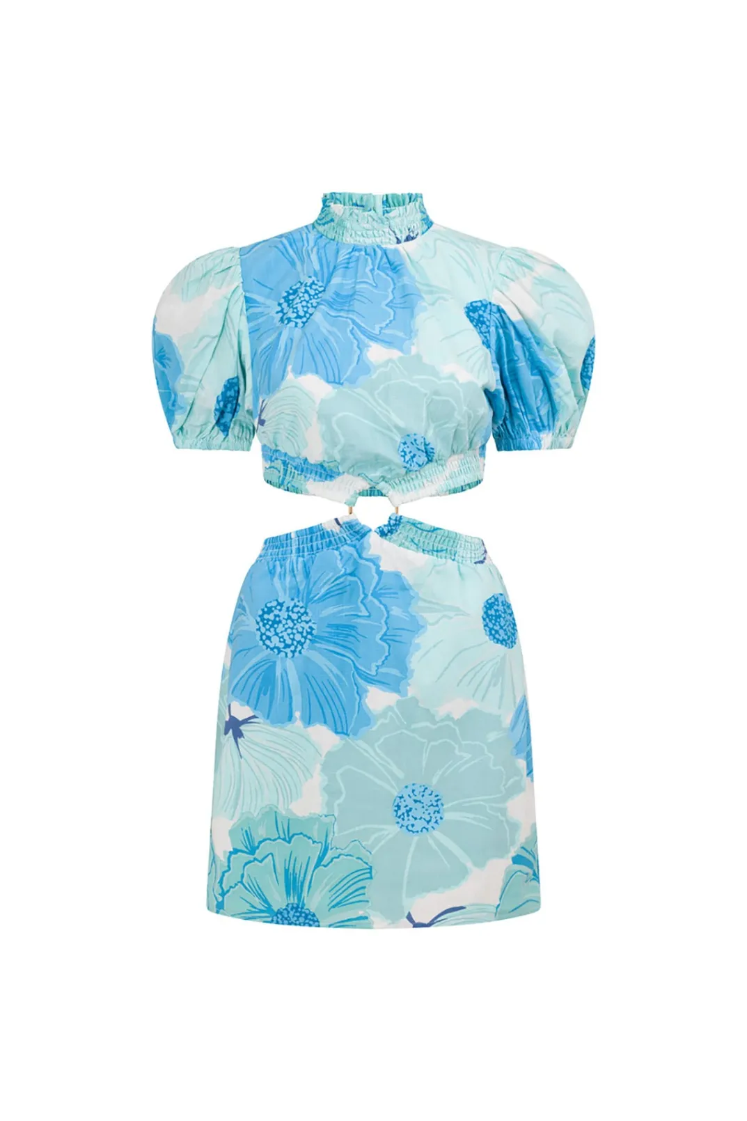 The Ultra Chic Backless Umiko Dress Is Made From A High Quality Structured Cotton Fabric With Our Exclusive Ocean Lily Print. It Features An Open Back, Short Puff Sleeves, Shirred Neckline And Waist Details And Cutouts At Waist. Style Your Look With The Strappy Rafaela Heels And Jamilla Bag For Your Next Event! Designed Exclusively By Sabo.