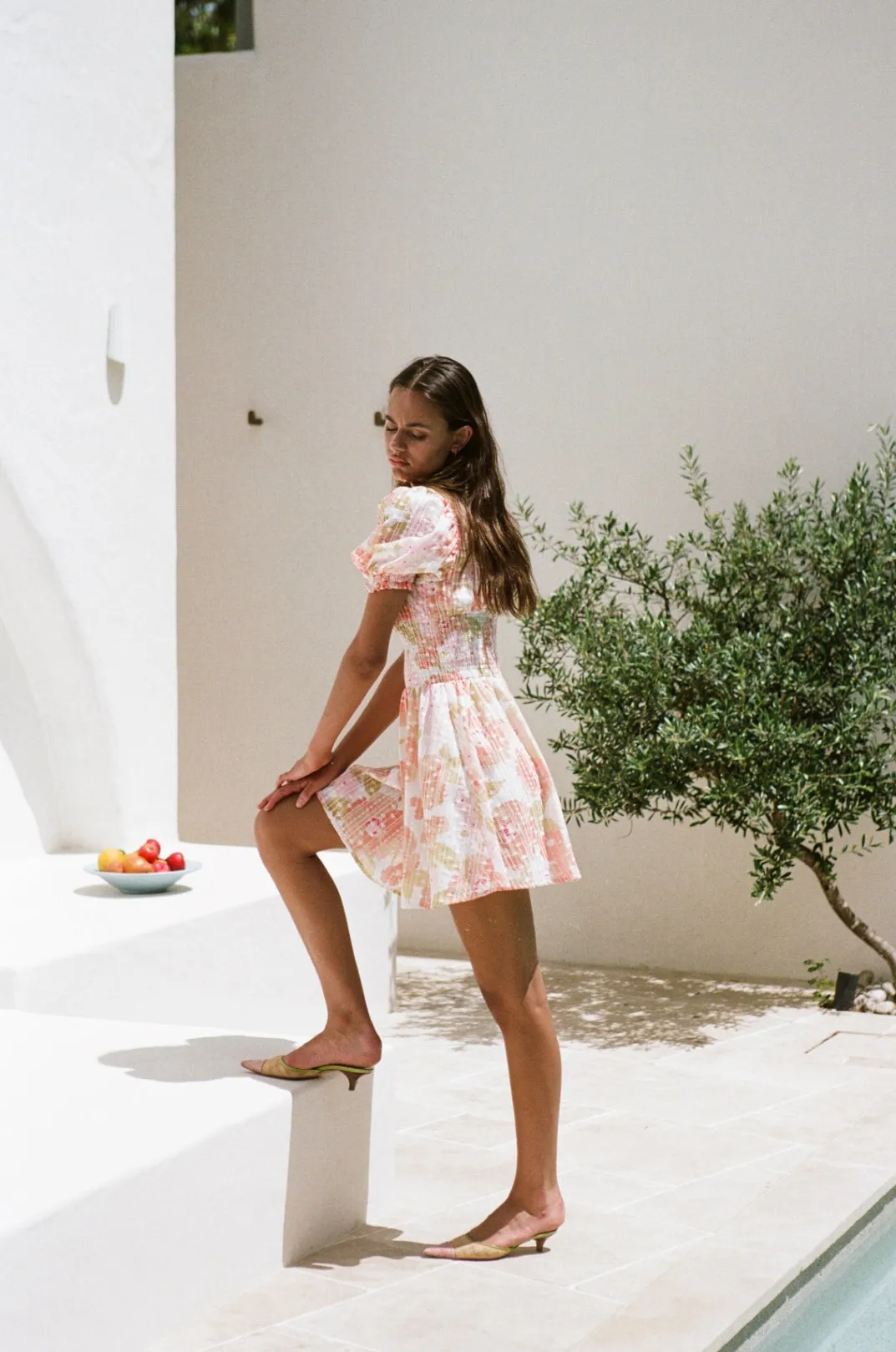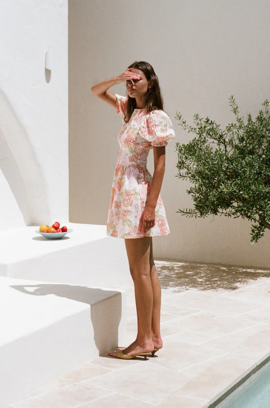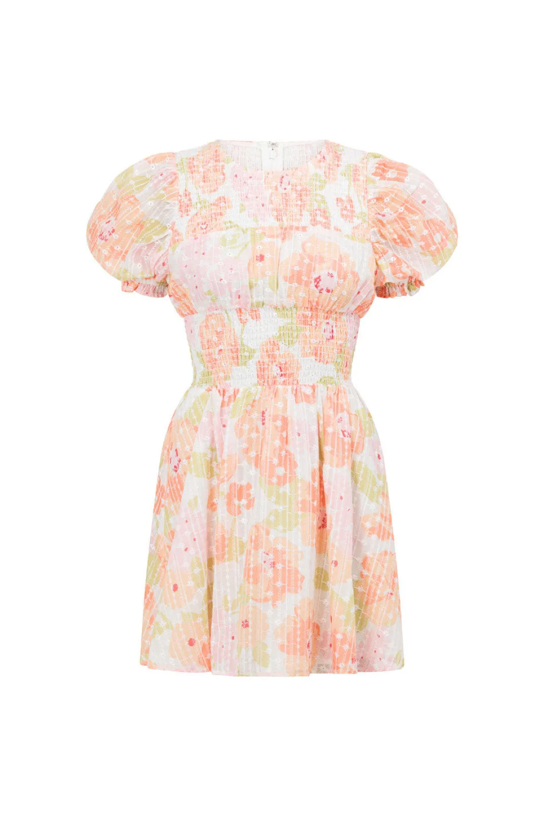 Feminine And Classy, Perfect For An Event! The Carlita Shirred Dress Is Made From A Lightweight Embroidered Fabric With Our Exclusive Anemone Floral Print. It Features A High Rounded Neck With Shirring Across Neckline And Waist, Short Puff Sleeves With Ruffle Hems And A Flouncy Skirt. Complete The Look With The Strappy Leila Heels And Gold Accessories! Exclusively Designed By Sabo.