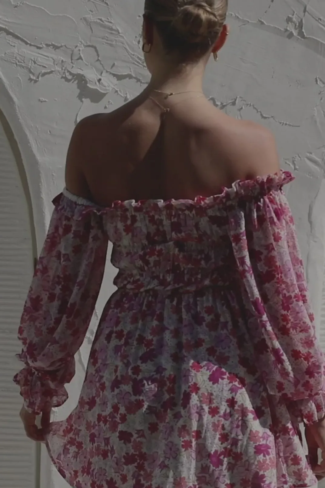 *This Is A Final Sale Item* Our Brand New Purple Haze Floral Print On A Feminine New Design! The Doja Off Shoulder Dress Is Made From A Luscious Textured Chiffon Fabric Featuring Off Shoulder Puff Sleeves With Frill Cuffs, Ruffle Across Neckline, Elastic Panels At Bodice And A Flouncy Skirt. Dress It Up With The Strappy Rafaela Heels! Designed Exclusively By Sabo.