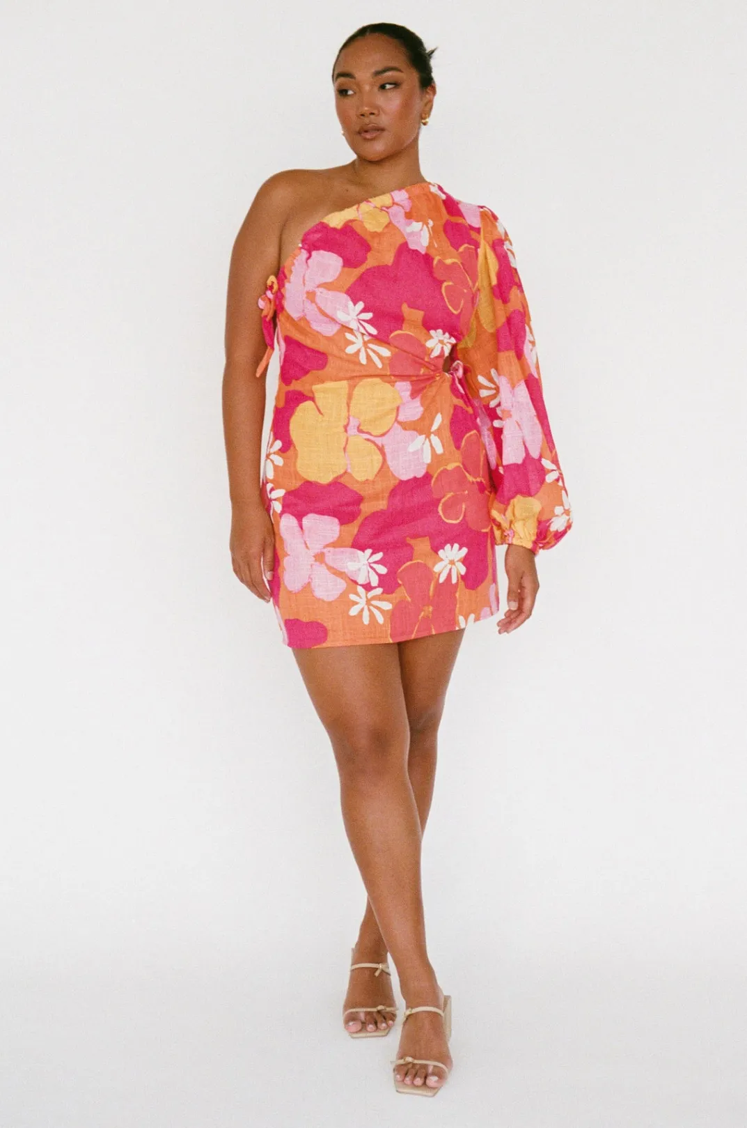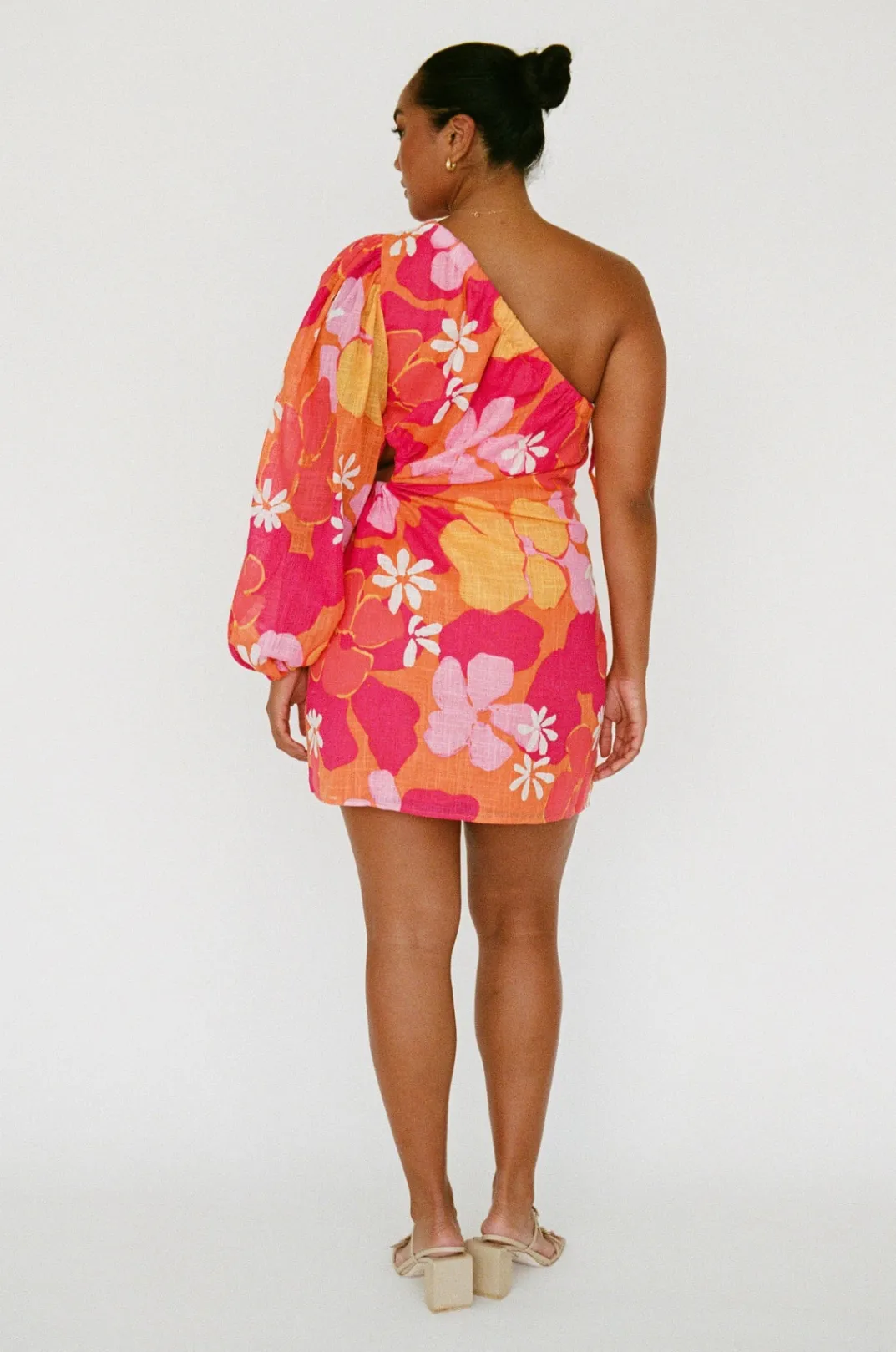 Inspired By Italian Sunsets, The Eila Cutout Dress Is Made From A Lightweight Natural Cotton Cheesecloth Fabric With Our Exclusive Remi Sunset Print. It Features One Full Length Puff Sleeve And Cutouts At Waist With Elastic And Tie Details. Dress It Up With The Strappy Leila Heels And Livia Earrings! Designed Exclusively By Sabo.