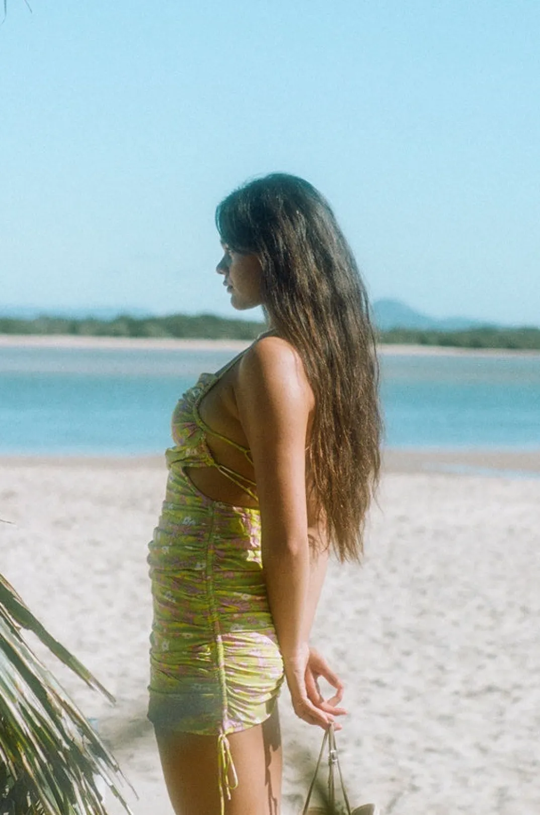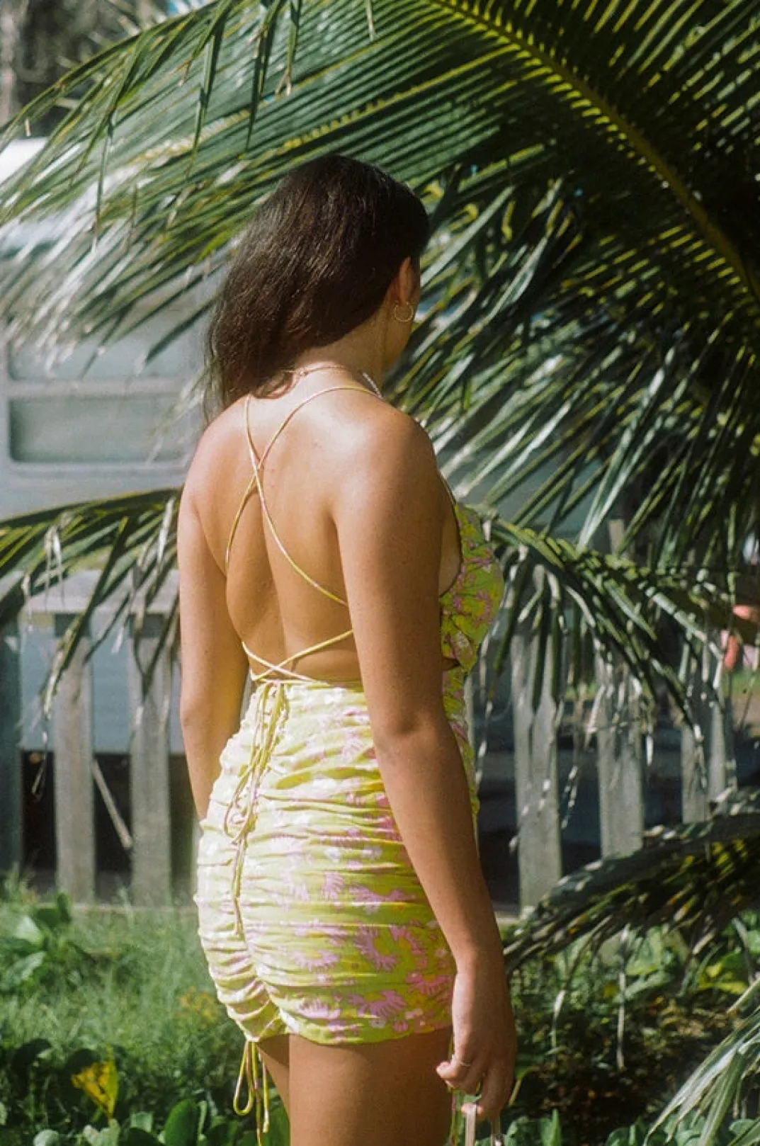 *This Is A Final Sale Item* The Perfect Party Dress Has Arrived! The Emery Dress Is Made From A High Quality Viscose Fabric With Our Exclusive Bright Retro Floral Print. It Is A Backless Style Featuring Strappy Tie Detailing, Straight Neckline, Cutouts At Waist, Adjustable Drawstrings At Sides And Gathered Detailing Throughout. Pair With The Strappy Rafaela Heels And Kumi Bag For A Night Out! Designed Exclusively By Sabo.
