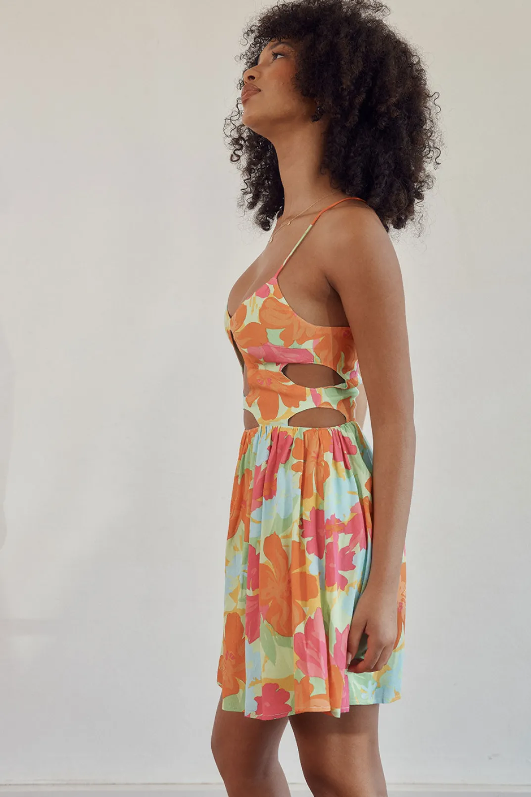 *This Is A Final Sale Item And Cannot Be Returned. See Our Returns Policy Here Introducing Our Bold New Print-Green Pacific Floral. Our Isabella Cami Dress Is Made From A High Quality Zipper Crepe Fabric And Features Thin Rouleau Straps, Scooped Neckline, Cutouts At Front And Sides Of Waist And A Flouncy Skirt. Dress It Up With The Zita Strappy Sandals Or Pair It Back With Chunky Sandals! Designed Exclusively By Sabo.