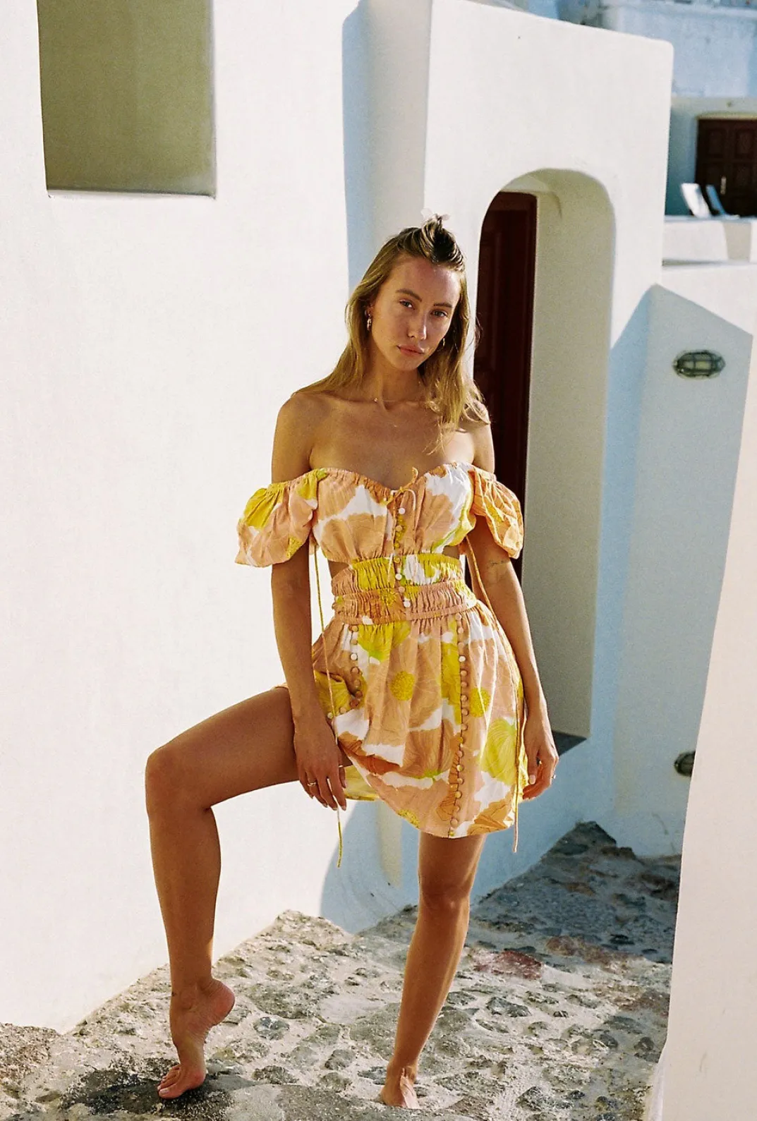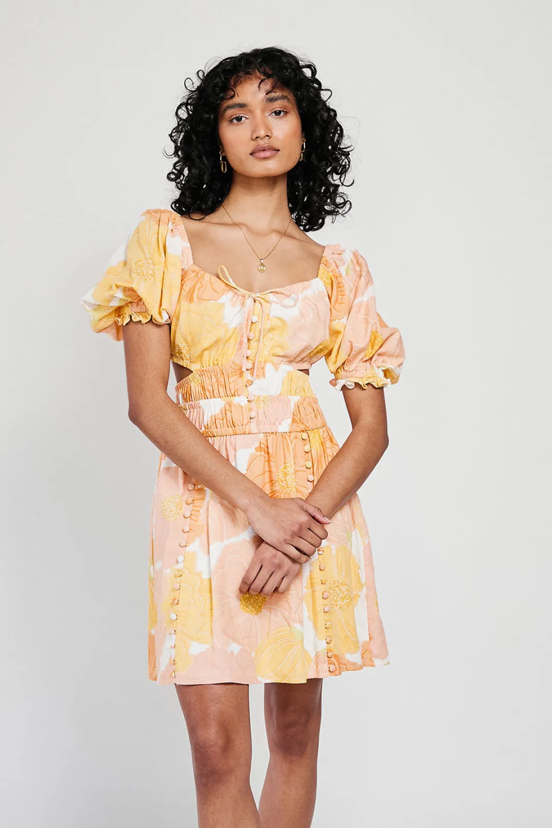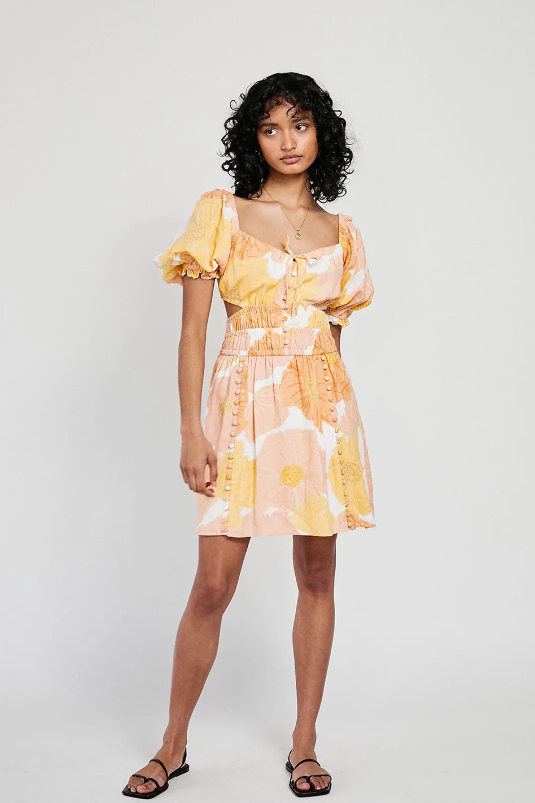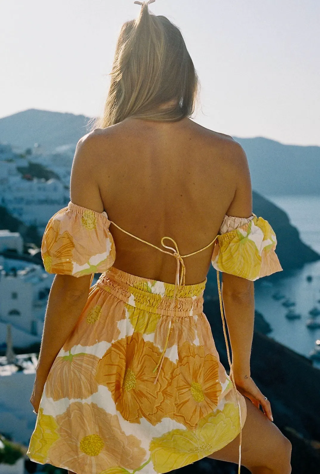 Inspired By Vacation Sunsets, The Kensington Backless Dress Is Made From A High Quality Viscose Linen Blend Fabric With Our Exclusive Poppy Print. It Features An Open Back With Tie Closures, Short Puff Sleeves, Covered Button Details At Front, Shirred Panels At Waist And A Flouncy Skirt. Dress It Up With The Strappy Rafaela Heels! Designed Exclusively By Sabo.