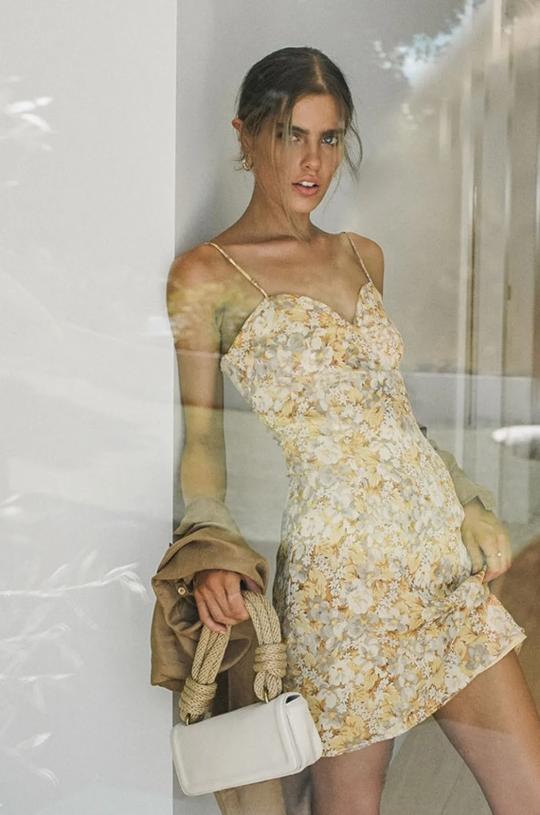A Simple Cami Style In The Most Pleasant Floral Hue! The Reece Cami Dress Is Made From A Lightweight Crepe Fabric And Features Thin Straps, Contrast Cups And A Body Skimming Fit. Complete The Look With The Transparent Mules! Exclusively Designed By Sabo.