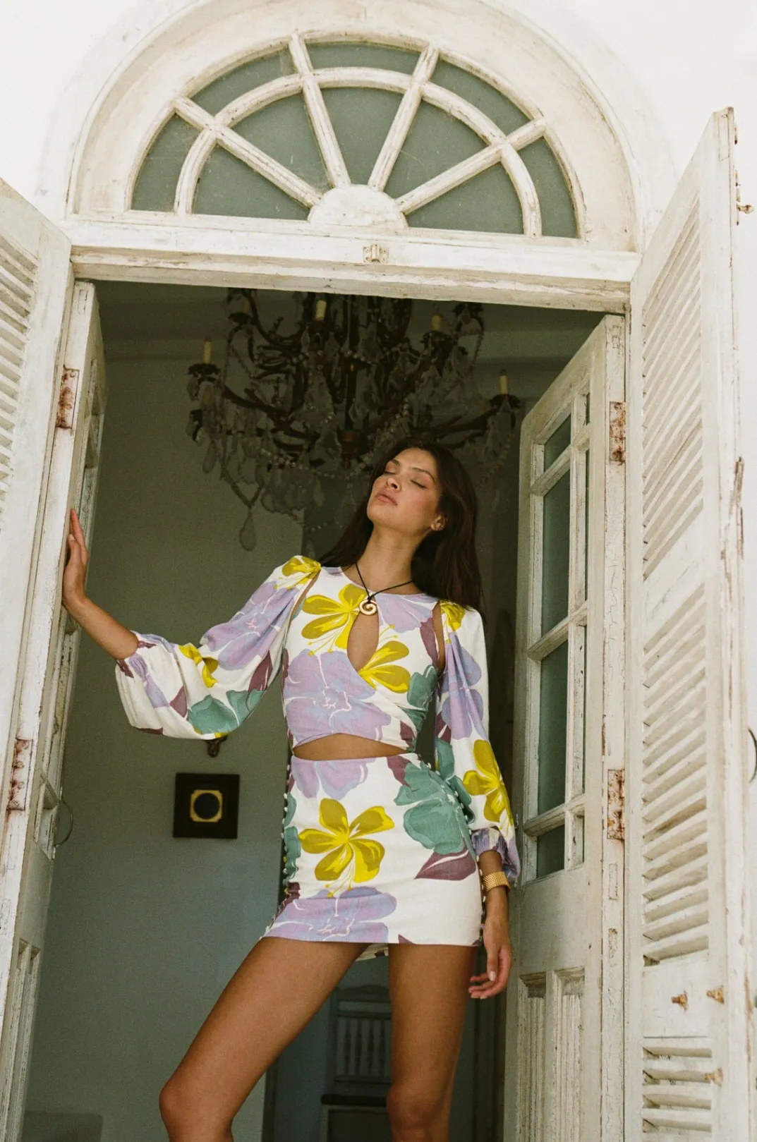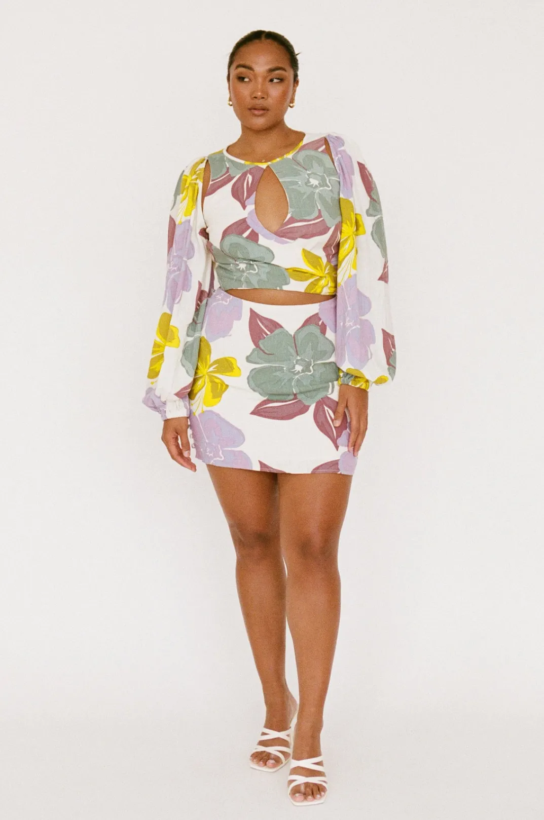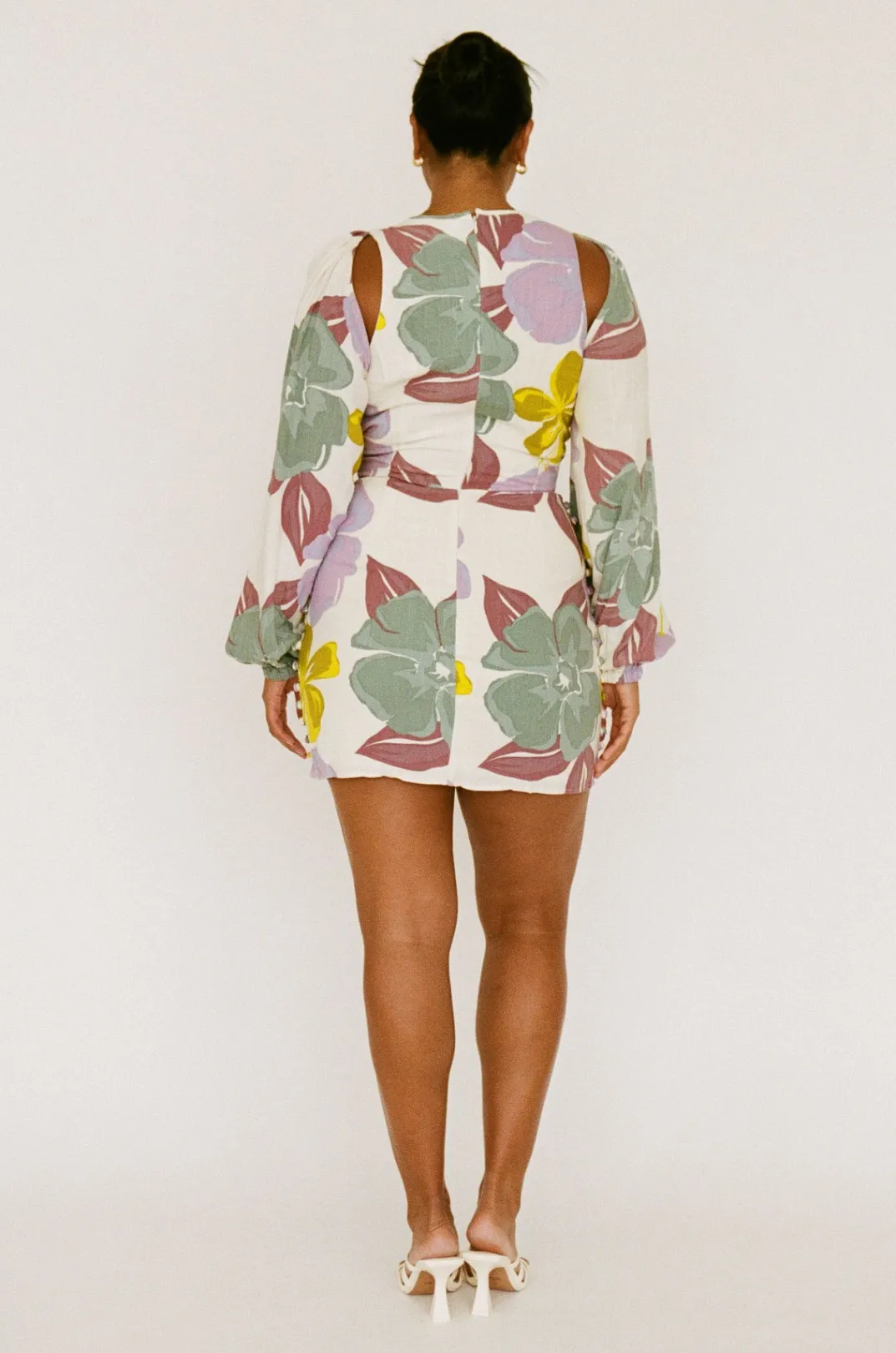 Designed To Flatter, The Zelle Keyhole Dress Is Made From A High Quality Viscose Linen Blend Fabric With Our Exclusive Royal Floral Print. It Features Full Length Puff Sleeves With Gathered Shoulders, High Rounded Neckline, Cutout Details At Tops Of Arms, Neckline And Waist And Covered Button Details At Sides Of Skirt. Dress It Up With Strappy Leila Heels For Your Next Event! Designed Exclusively By Sabo.