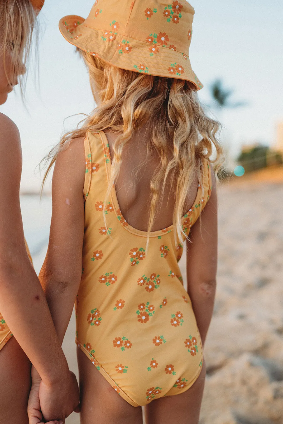 Perfect For Beach Adventures, The Matilda Bucket Hat Is Made From A Natural Cotton With Our Exclusive Retro Floral Print. It Is Abucket Stylefeaturing A Wide Brim With An Attached Draw Chin Strap. Pair With The Matching Peppa Swimsuit! Designed Exclusively By Sabo.