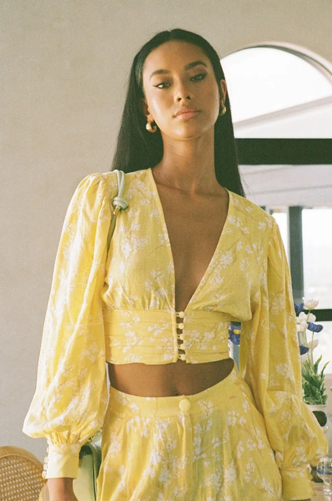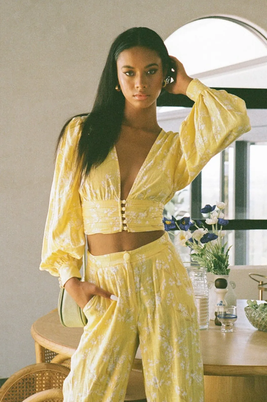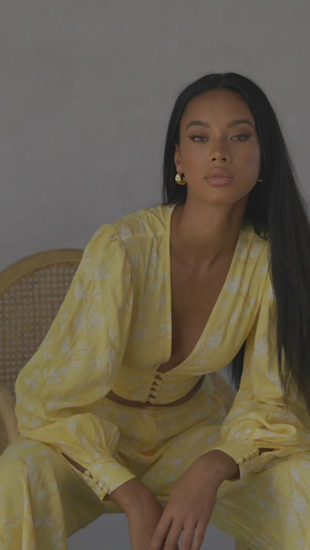 *This Is A Final Sale Item* The Chic Alexi Pants Are Made From A High Quality Cheesecloth Fabric With Our Exclusive Speck Floral Print Throughout. They Are A High Waisted Wide Leg Style Featuring Twin Pockets At Sides. Complete The Look With The Alexi Top, Transparent Mules And Nahla Ruched Bag. Designed Exclusively By Sabo.