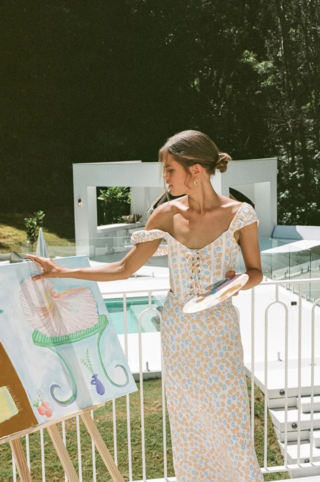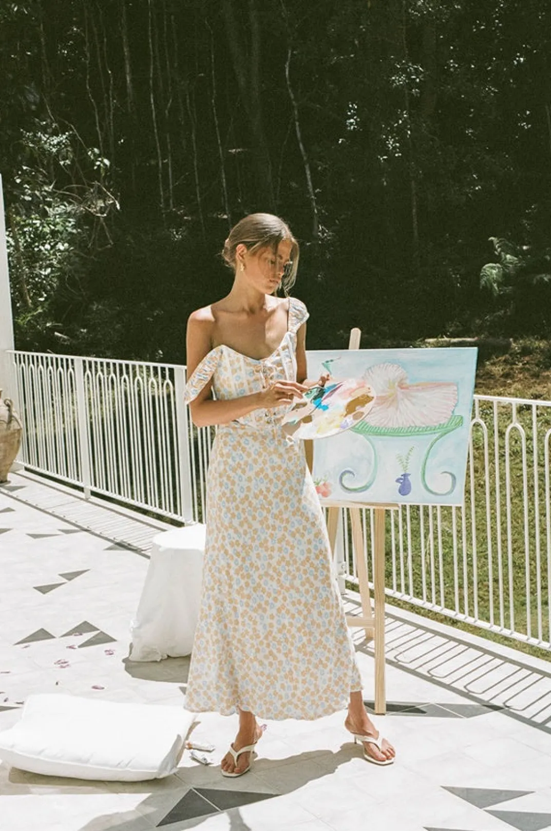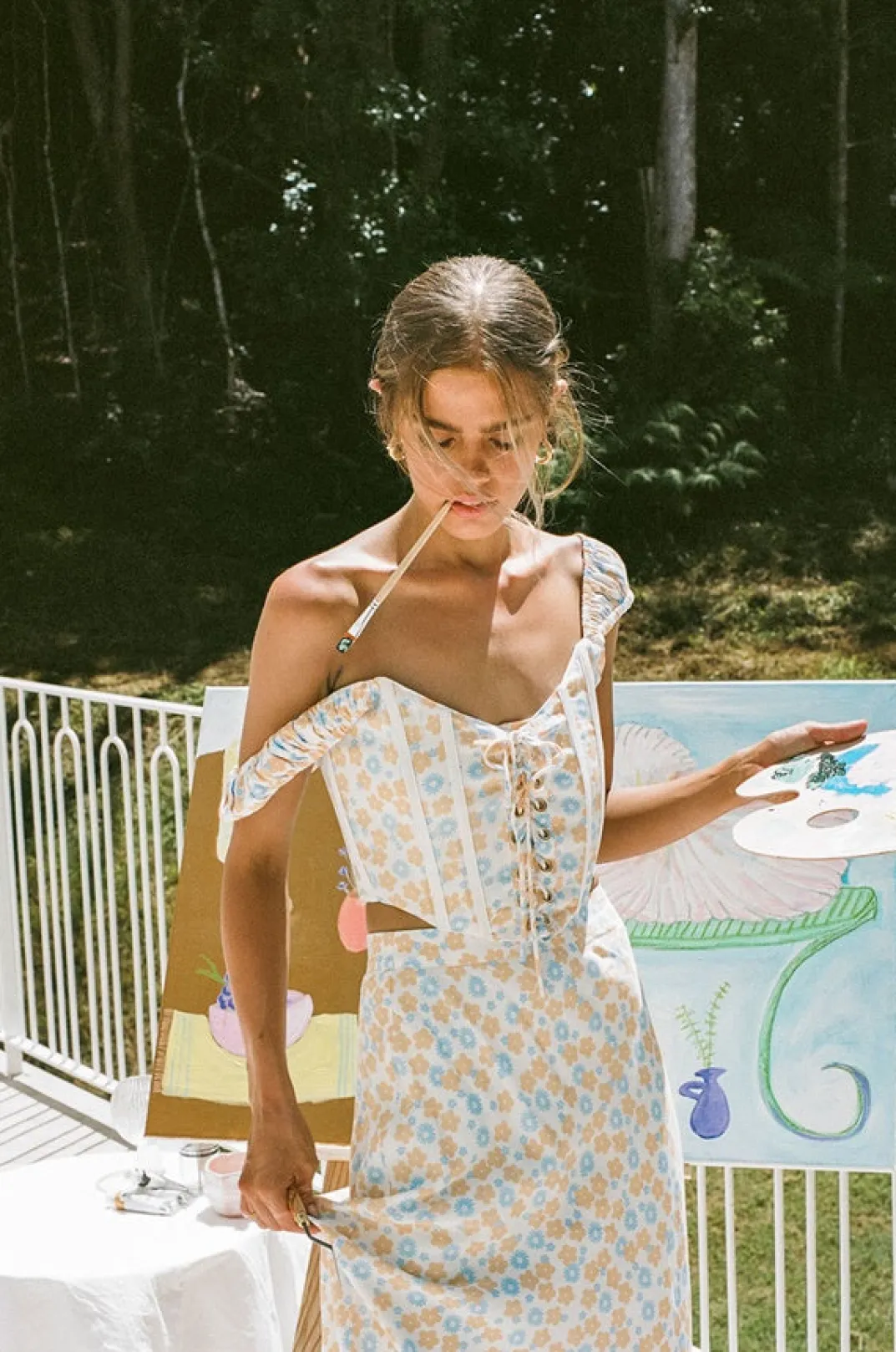 *This Is A Final Sale Item* The Most Dreamy Set Inspired By Sun Drenched Afternoons With Friends! The Aliana Midi Skirt Is Made From A Zipper Crepe Fabric With Our Exclusive Buttercup Floral Print. It Is A High Waisted Style Featuring A Flowy Fit. Pair With The Aliana Corset Top And Strappy Rafaela Heels. Designed Exclusively By Sabo.