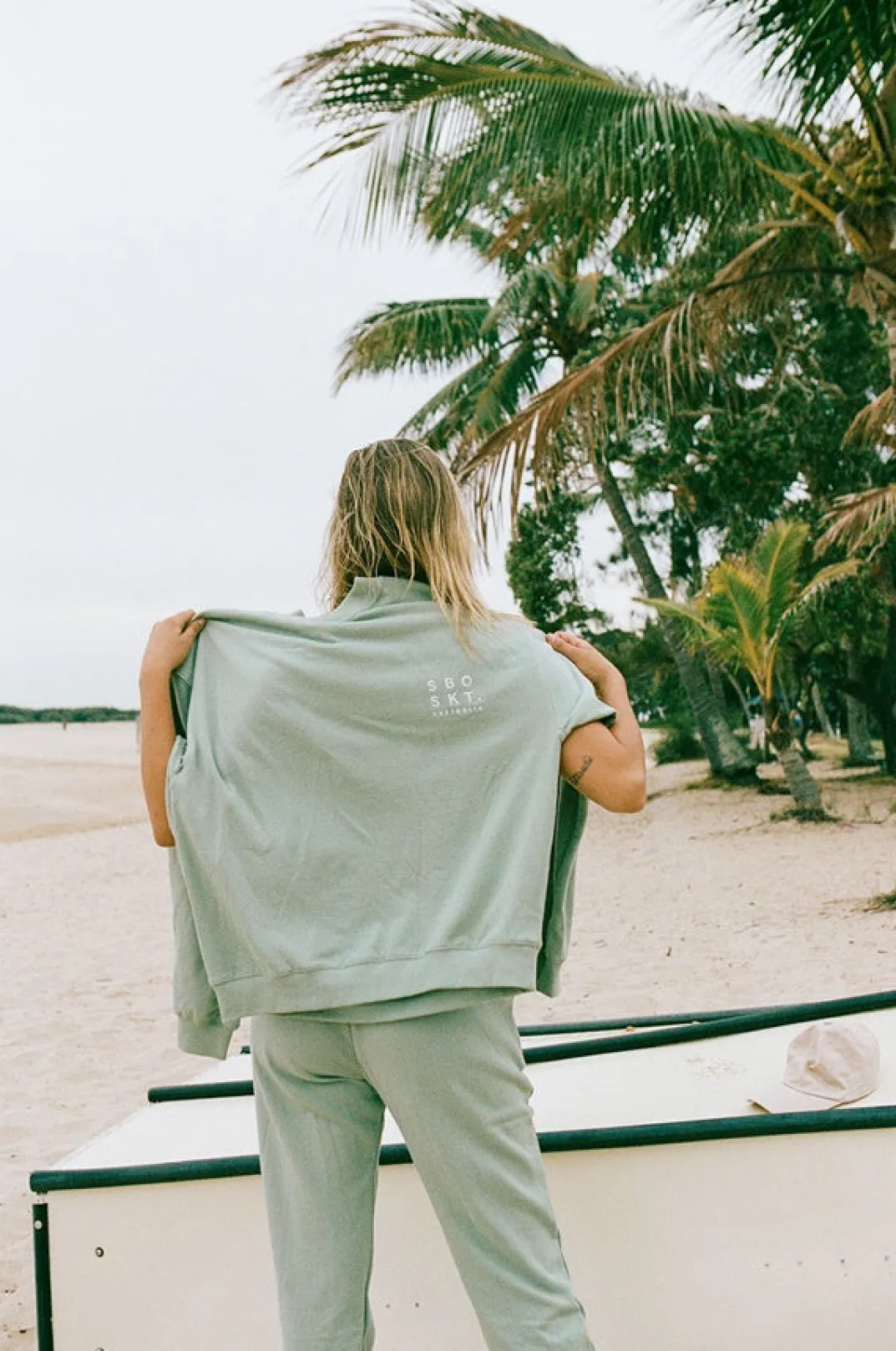 *This Is A Final Sale Item*A Cosy Basic Set In A Super Cute Shade! The Arcadia Sweater Is Made From A Natural Cotton Terryback Fabric In Green Hue. It Is A Unisex Style Featuring A Ribbed Crew Neck, Full Length Sleeves, Ribbed Cuffs And Waistband And White Embroidered Detailing. Complete Your Look With The Arcadia Sweatpants And Sbo Crew Socks! Exclusively Designed By Sabo.