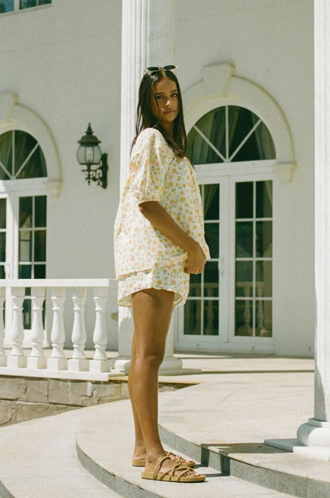 *This Is A Final Sale Item* A Go-To Look In Our Exclusive New Print! The Avant Shorts Are Made From A Natural Cream Cotton Fabric With Our Vintage Floral Print. They Are A High Waisted Style Featuring An Elasticated Waist With Drawstring And High-Low Hems. Get The Look With The Avant Babydoll Top And Neutral Sandals! Designed Exclusively By Sabo.