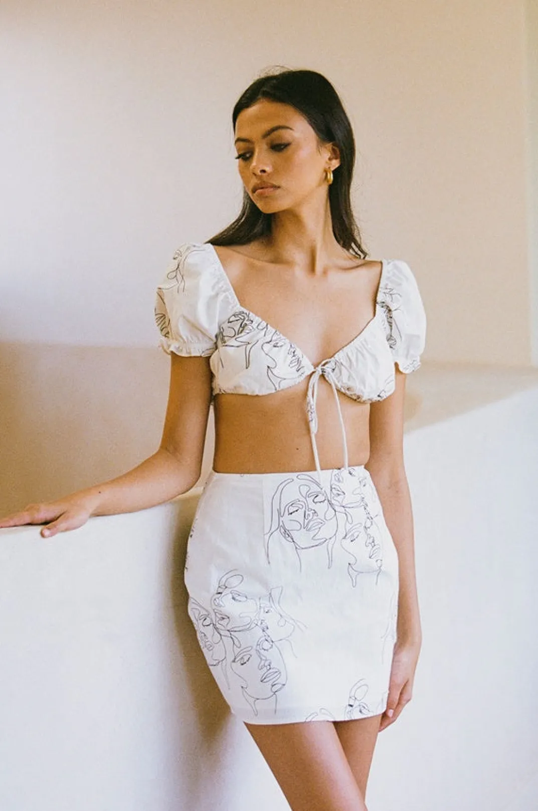 *This Is A Final Sale Item* Perfect For Summer Party Season, The Bandera Skirt Is Made From A High Quality Natural Cotton Fabric With Our Exclusive Silhouette Print Throughout. It Is A High Waisted Mini Style Perfect Paired With The Bandera Top And Lattice Mini Backpack. Designed Exclusively By Sabo.