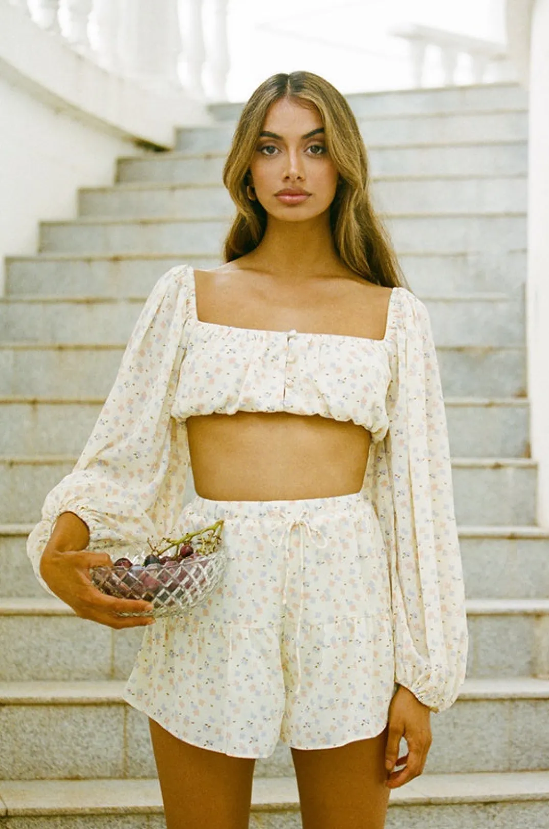 *This Is A Final Sale Item* Inspired By Warm Spring Vacations, The Cayenne Shorts Are Made From A Lightweight Yellow Fabric With The Floral Buttercup Print Throughout. They Are A High Waisted Style Featuring An Elasticated Waist And Drawstring, High-Low Hems And A Flouncy Panel Across Hem. Pair With The Cayenne Top And Glow Necklace! Designed Exclusively By Sabo.