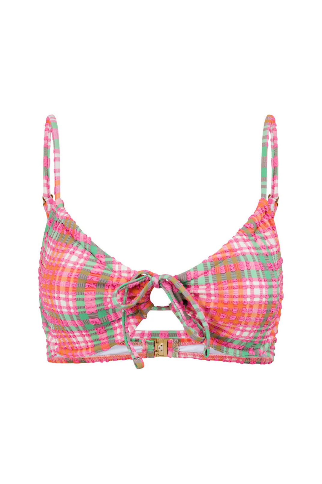 The Perfect Pair For A Larger Bust, Thecuba Drawstring Top Is Made From A High Quality Textured Seersucker Swimwear Fabric In Pink, White, Green And Orange Hues. It Features Adjustable Straps, Keyhole At Centre Bust, Clasp Closure At Back And Boning For Added Structural Support. Pair With The Cuba Or Farren Tie Bottom! Designed Exclusively By Sabo.
