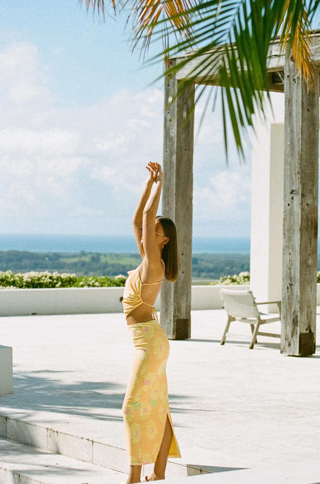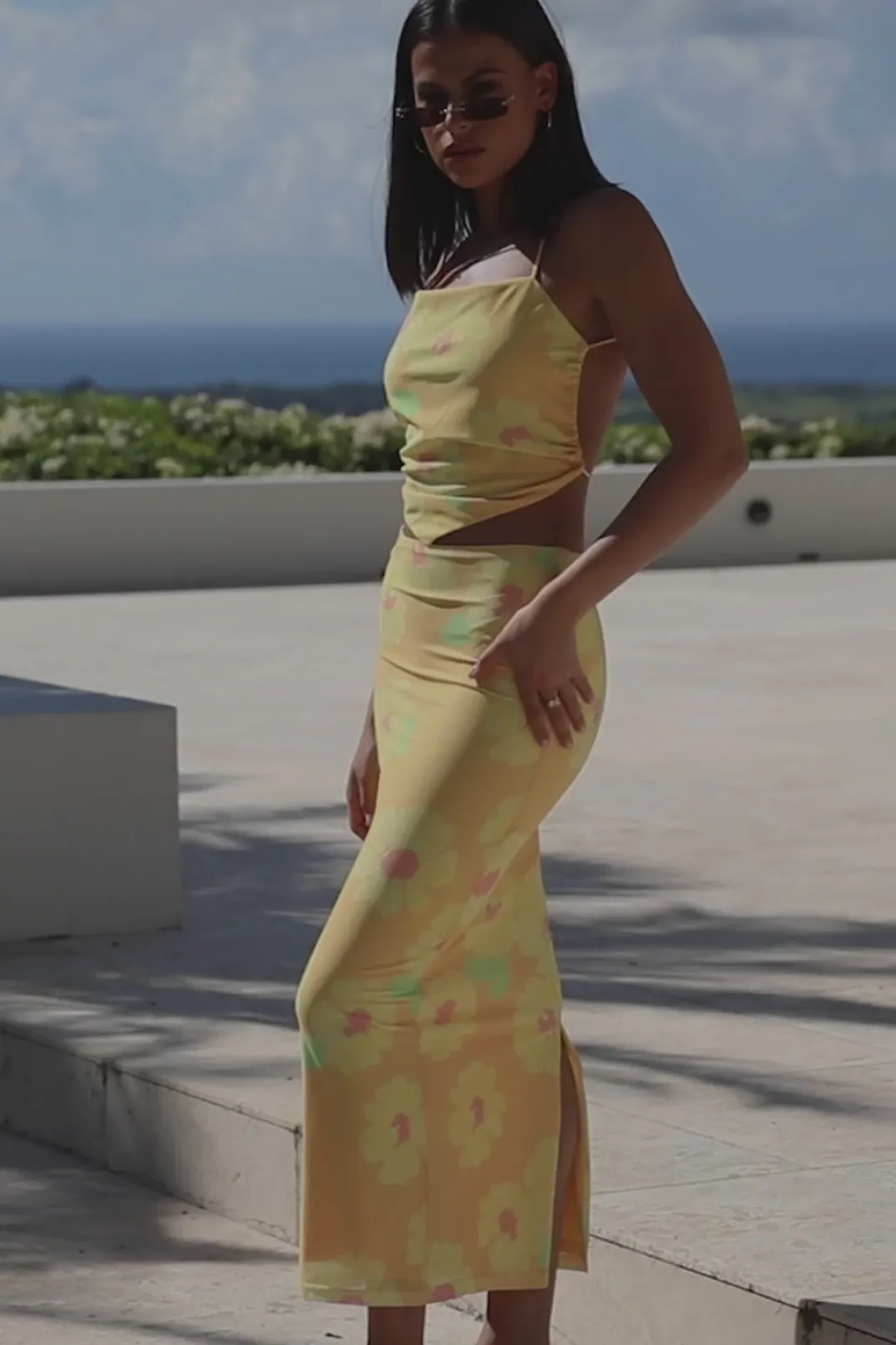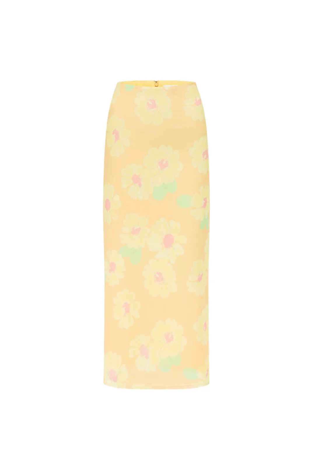 *This Is A Final Sale Item* Wear It As A Set Or Pair It Back With A Relaxed Top! The Dalton Midi Skirt Is Made From Our High Quality Stretchy Mesh Fabric With Our Exclusive Orange Painted Flower Print. It Is A Fitted Style Featuring A Centre Back Split. Get The Look With The Dalton Scarf Top! Designed Exclusively By Sabo.