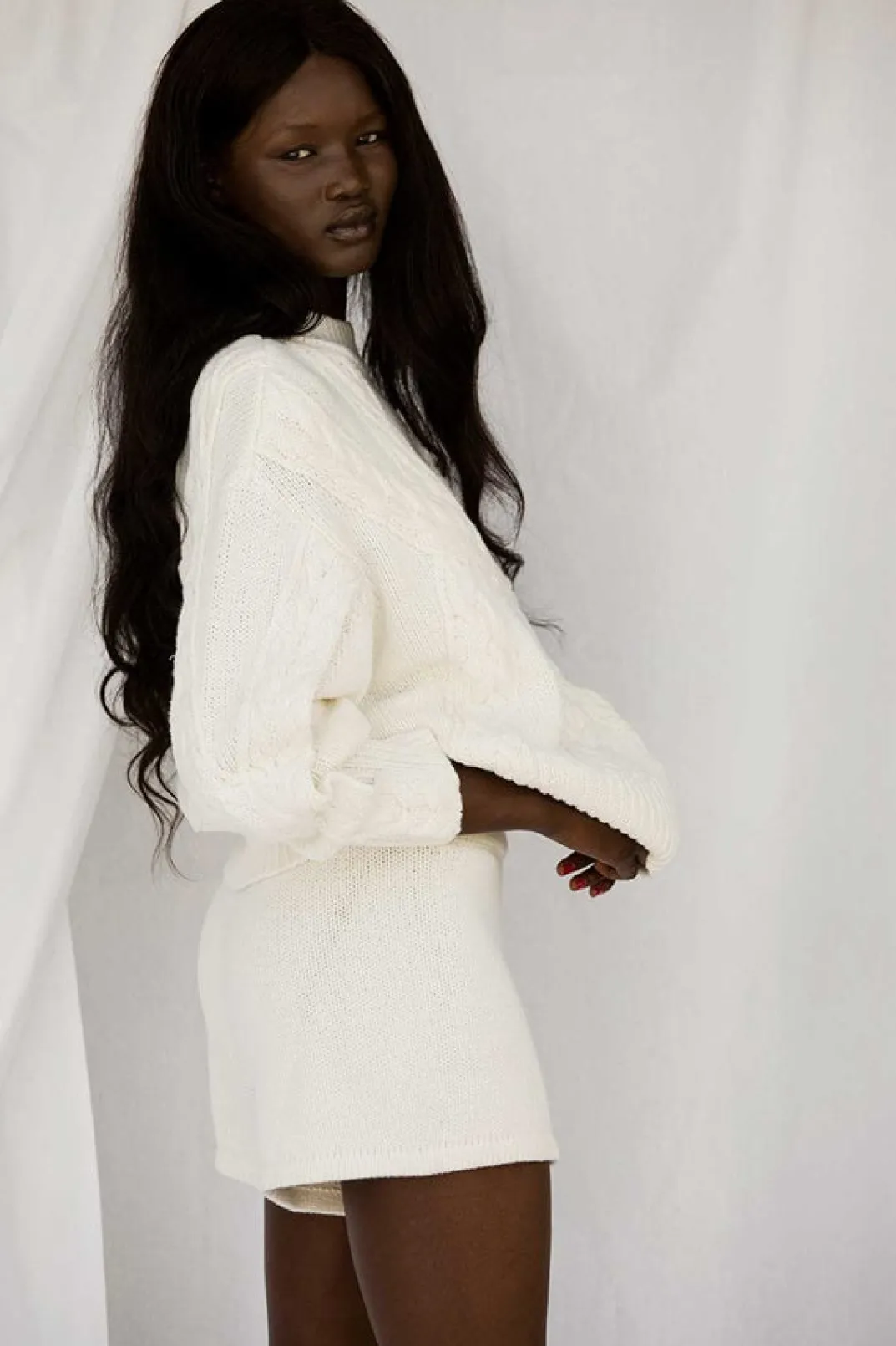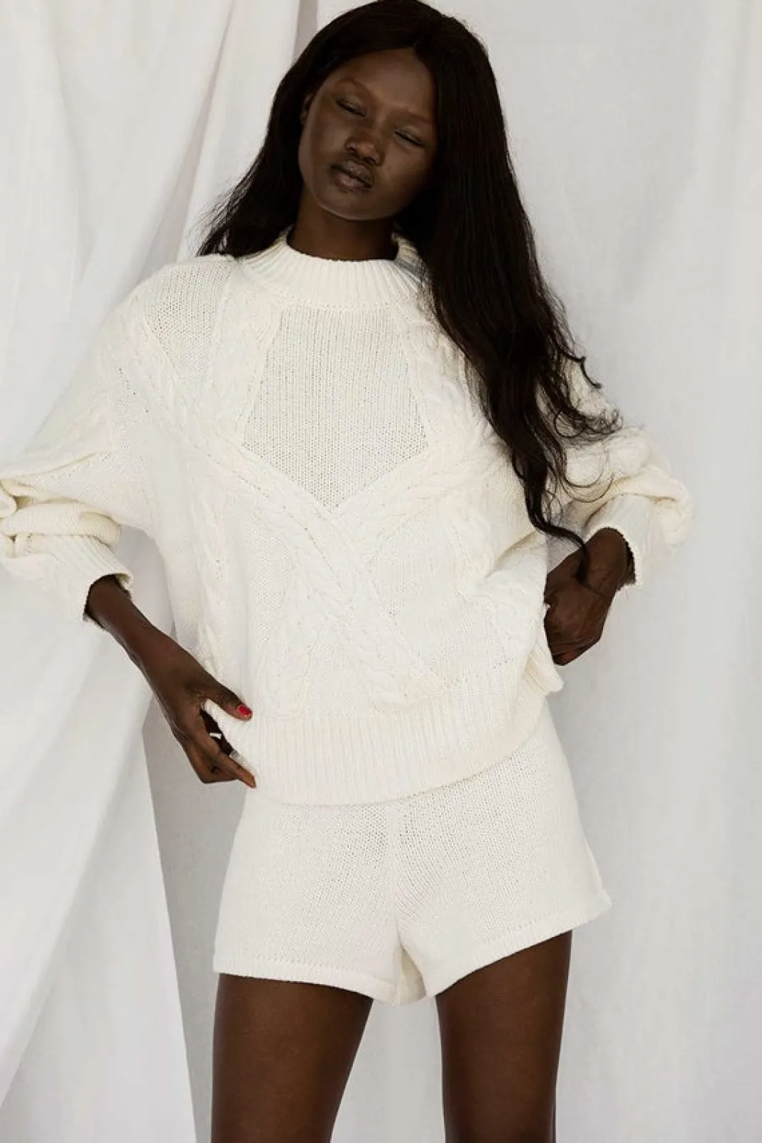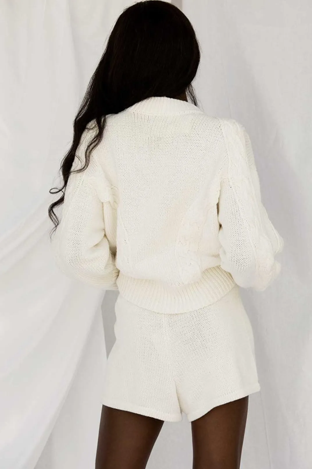*This Is A Final Sale Item* The Demi Knit Top Is A Classic Style Made From A Soft Knitted Yarn. It Is A Relaxed Style Featuring A Ribbed Polo Neck, Full Length Sleeves With Ribbed Cuffs And Cable Detailing Throughout. Complete The Look With The Demi Knit Shorts And 18K Vine Earrings! Exclusively Designed By Sabo.