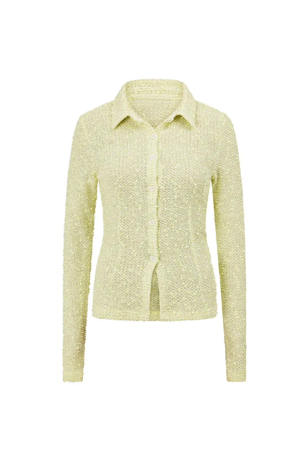 For The Fashion Forward! The Drew Top Is Made From A Textured Cotton Blend Boucle Knit In A Citrus Hue. It Is A Fitted Style Featuring Full Length Sleeves, Buttons Down Centre Front And Collar. Get The Look With The Drew Skirt And Transparent Espadrilles. Designed Exclusively By Sabo.