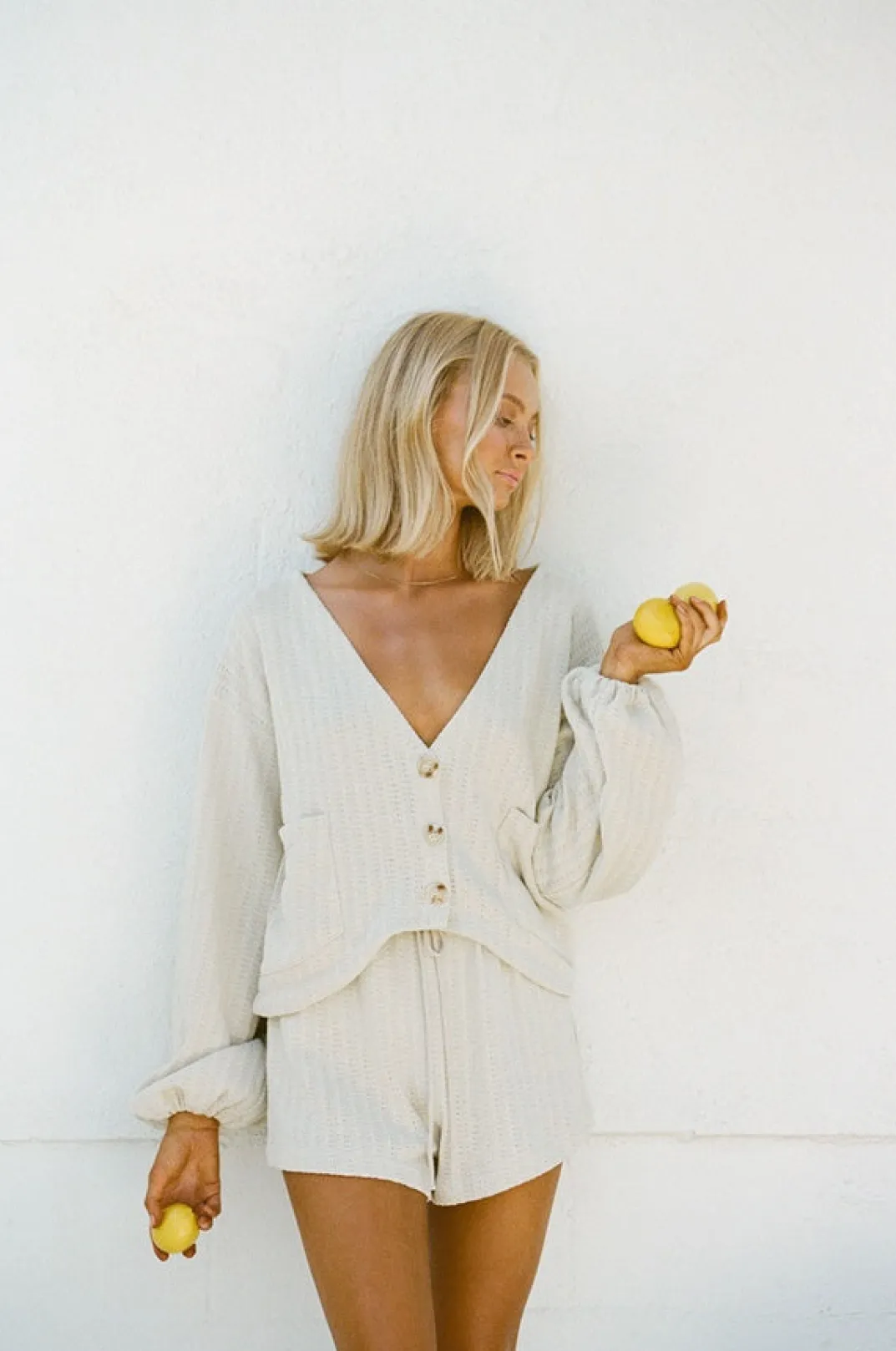 *This Is A Final Sale Item* The Super Cosy Ellis Cardi Is Made From A Soft Woven Fabric In A Stone Hue. It Features Full Length Puff Sleeves With Elasticated Cuffs, Buttons At Centre Front And Twin Pockets. Complete The Look With The Ellis Shorts, Neutral Sandals And The Lattice Mini Backpack! Exclusively Designed By Sabo.