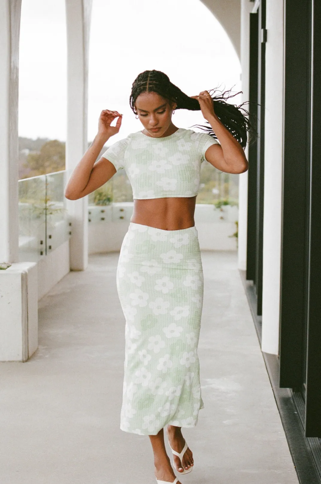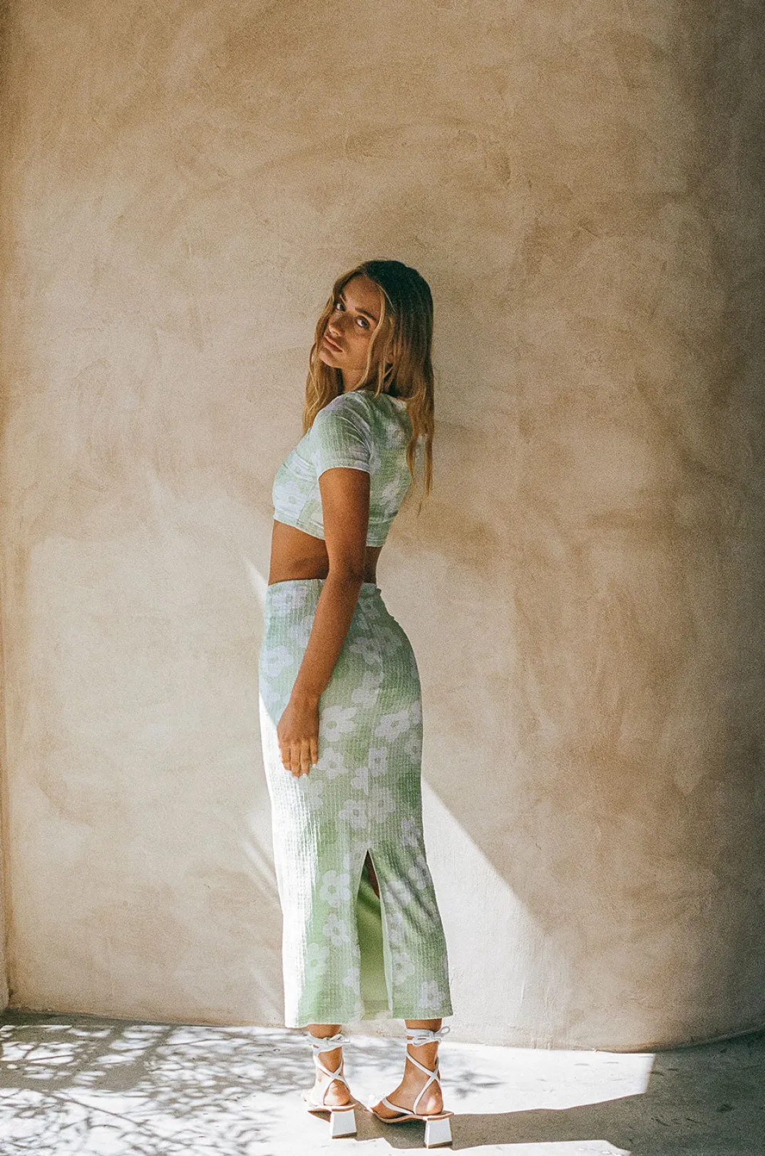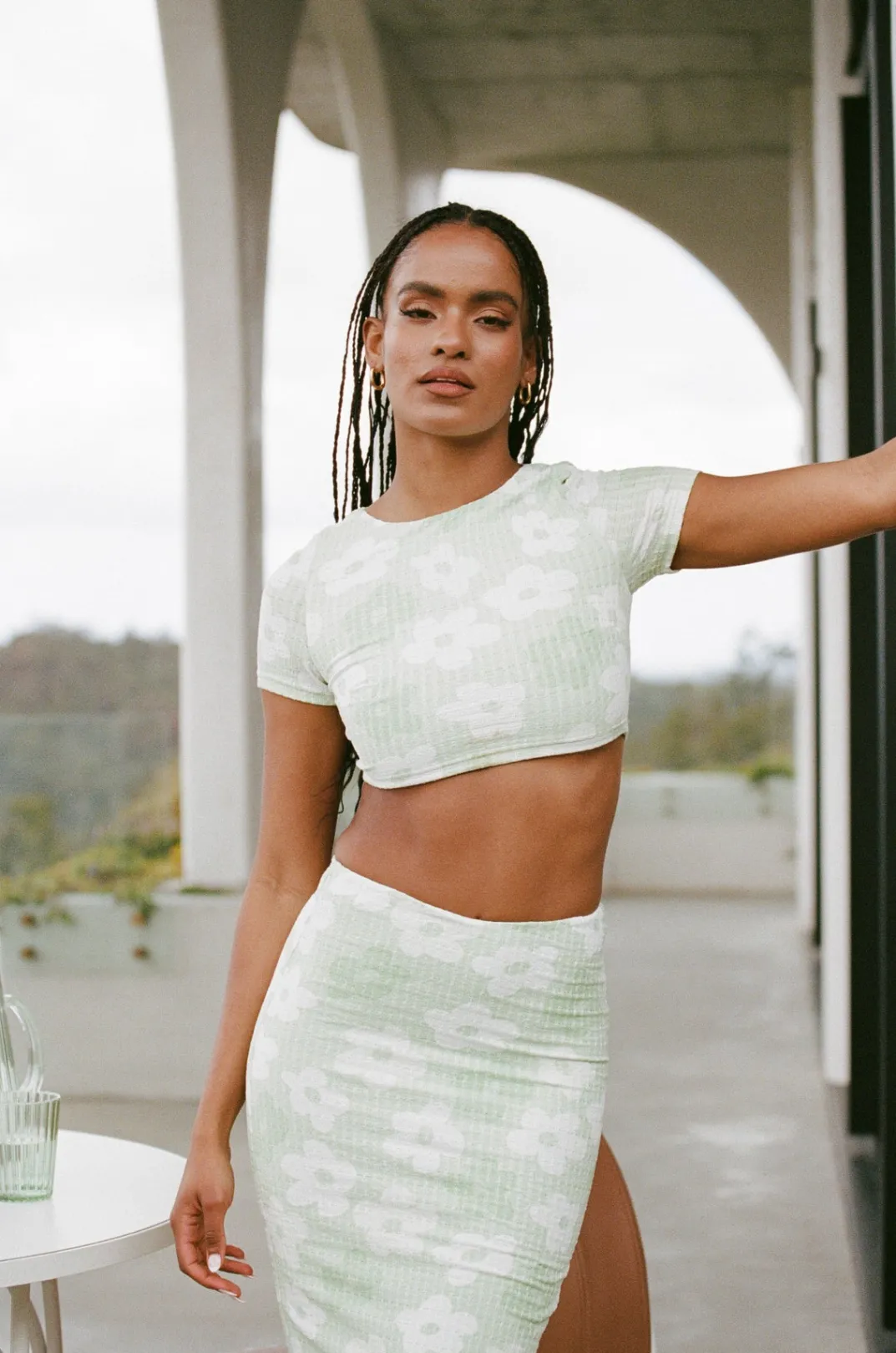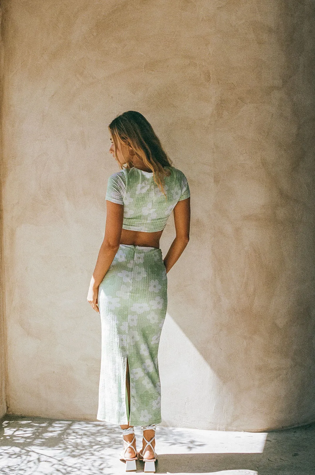 The Perfect Set For Afternoon Catch Ups With The Girls! The Esperenza Skirt Is Made From A Textured Bubble Fabric With Our Exclusive Happy Daisy Print. It Is A High Waisted Style Featuring A Centre Back Split. Get The Look With The Esperenza Top! Designed Exclusively By Sabo.