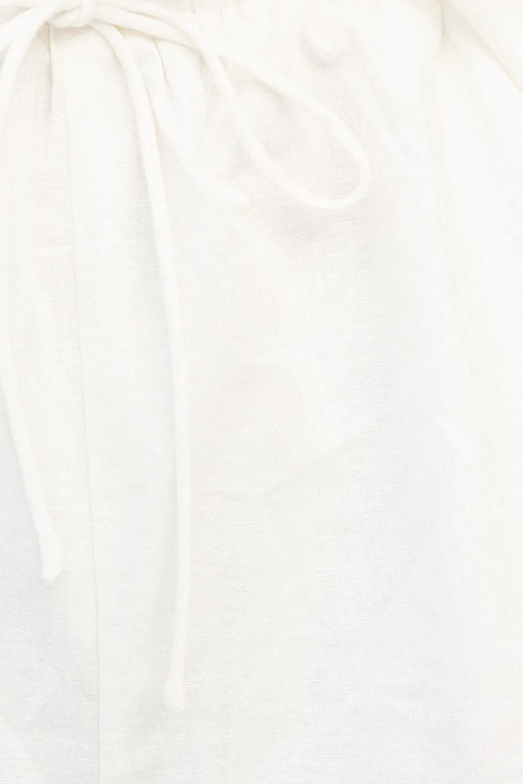 Wear It As A Set Or Style Them Your Way! The Everley Shorts Are Made From A Beautiful Linen Fabric In An Off White Hue. They Are A High Waisted Style Featuring An Elasticated Waist, Drawstring, Twin Pockets And High-Low Hems. Complete The Look With The Everley Top And Mini Raven Backpack! Exclusively Designed By Sabo.
