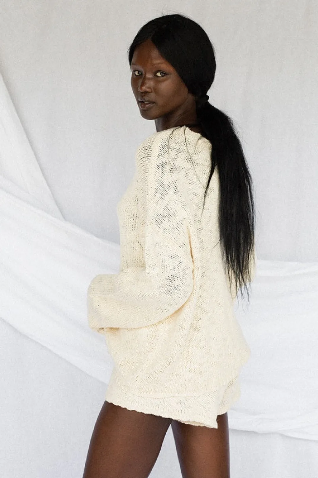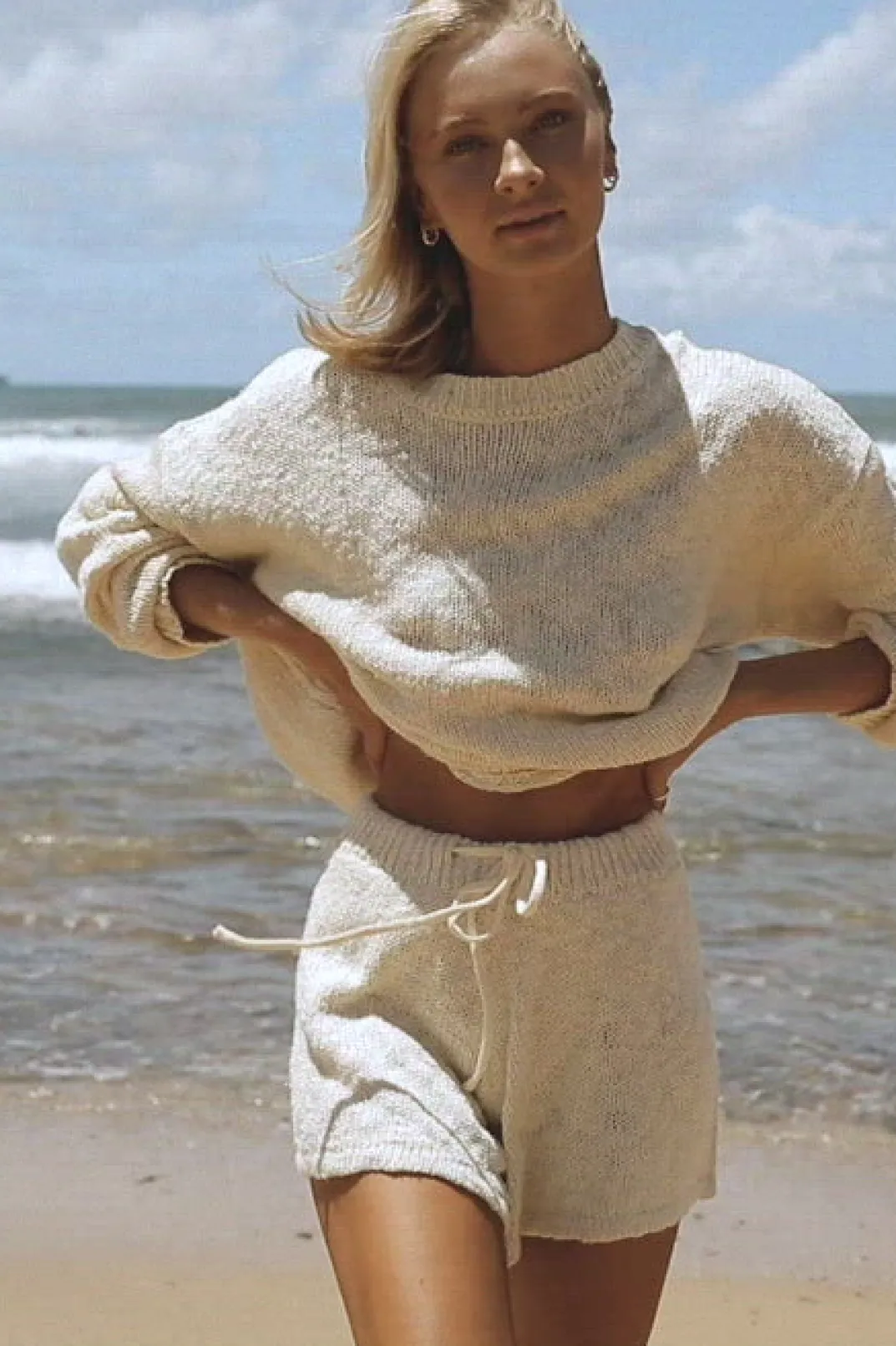 The Vintage Inspired Freja Knit Top Is Made From A Soft Cotton Knit In A Cream Hue. It Is A Relaxed Style Featuring A High Rounded Neckline And Ribbed Trim Detailing At Neck, Hem And Cuffs. Get The Look With The Freja Knit Shorts And Soft Scrunchie! Exclusively Designed By Sabo.