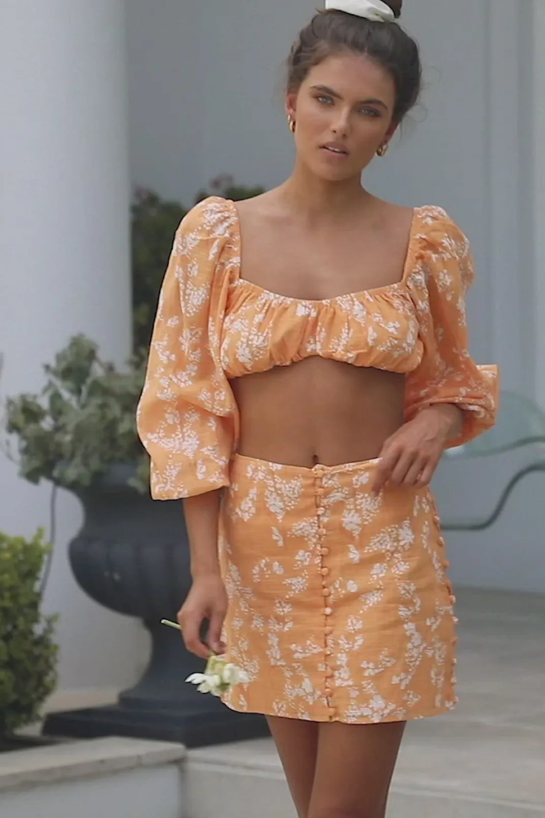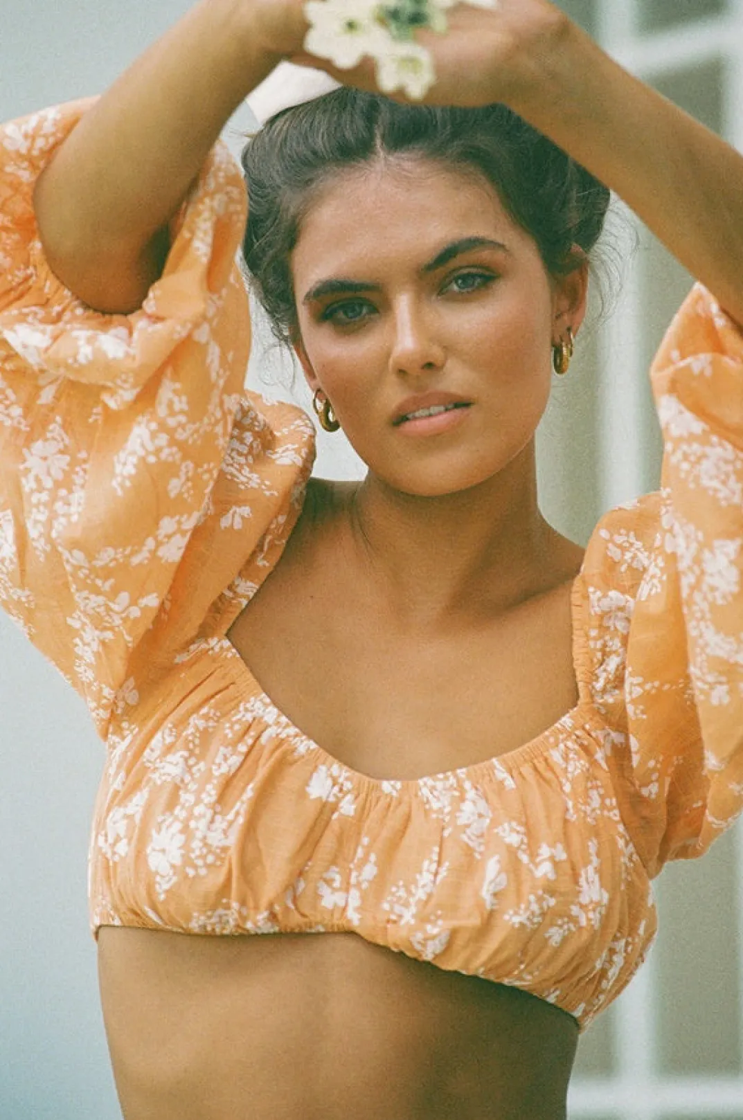 *This Is A Final Sale Item* We’Ve Got Your Summer Party Outfit Sorted! The Jazmin Top Is Made From An Orange Cheesecloth Fabric With Our Exclusive Speckled Floral Print Throughout. It Is A Bandeau Style Featuring A Pillowy Gathered Bust And Puff Sleeves. Sleeves Can Be Work Full Length Or Pushed Up To Elbows! Designed Exclusively By Sabo.
