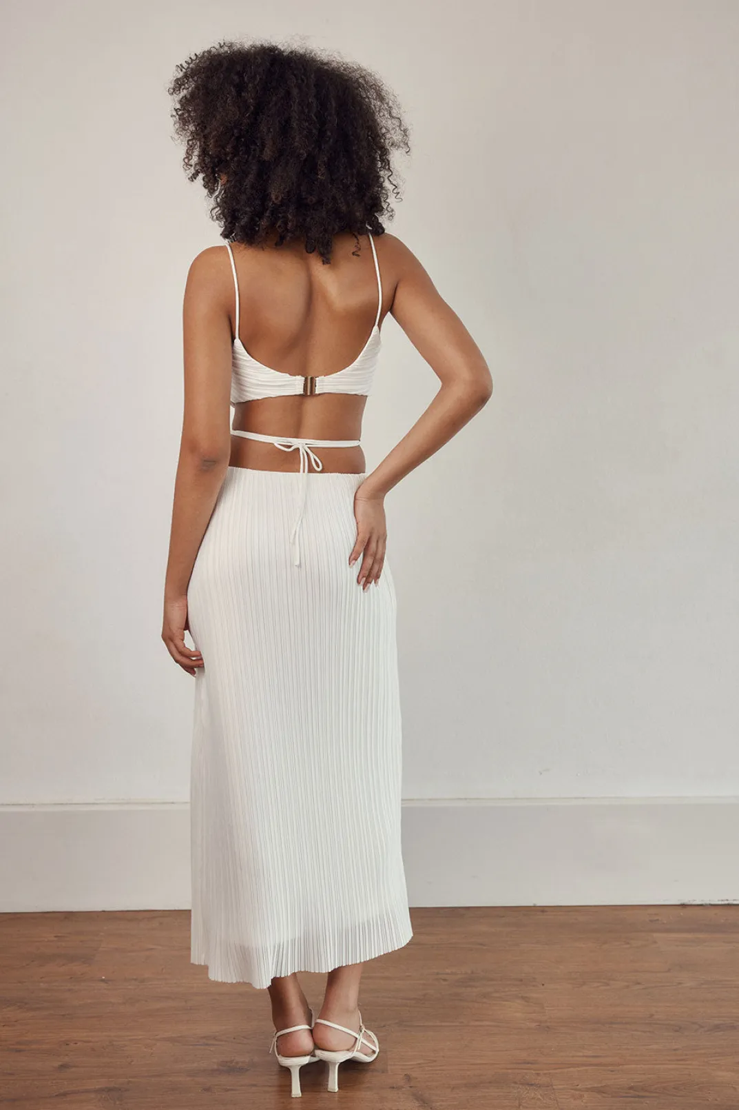 A Flattering Style With Super Cute Details! The Katia Skirt Is Made From A Textured Pintuck Fabric In White Featuring Cutouts At Sides Of Waist And Tie Details. Get The Set With The Katia Top! Designed Exclusively By Sabo.