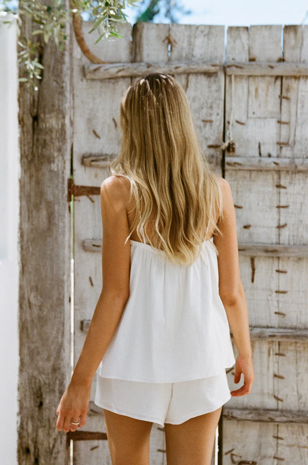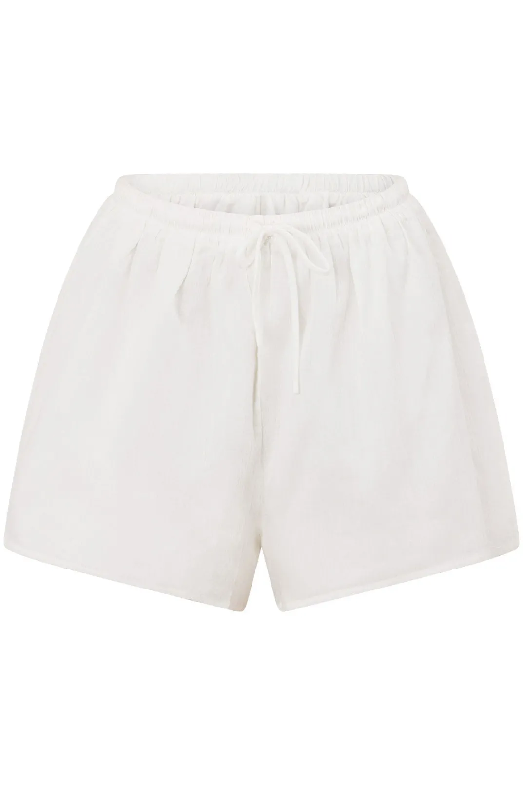 Throw It Over Bikinis Or Tuck In The Front And Pair With Heels! The Super Versatilekimora Shorts Are Made From A High Quality Natural Crepe Cotton Fabric In White. They Are A High Waisted Style Featuring An Elasticated Waist With Drawstring And High-Low Hems. Get The Look With The Kimora Top! Designed Exclusively By Sabo.
