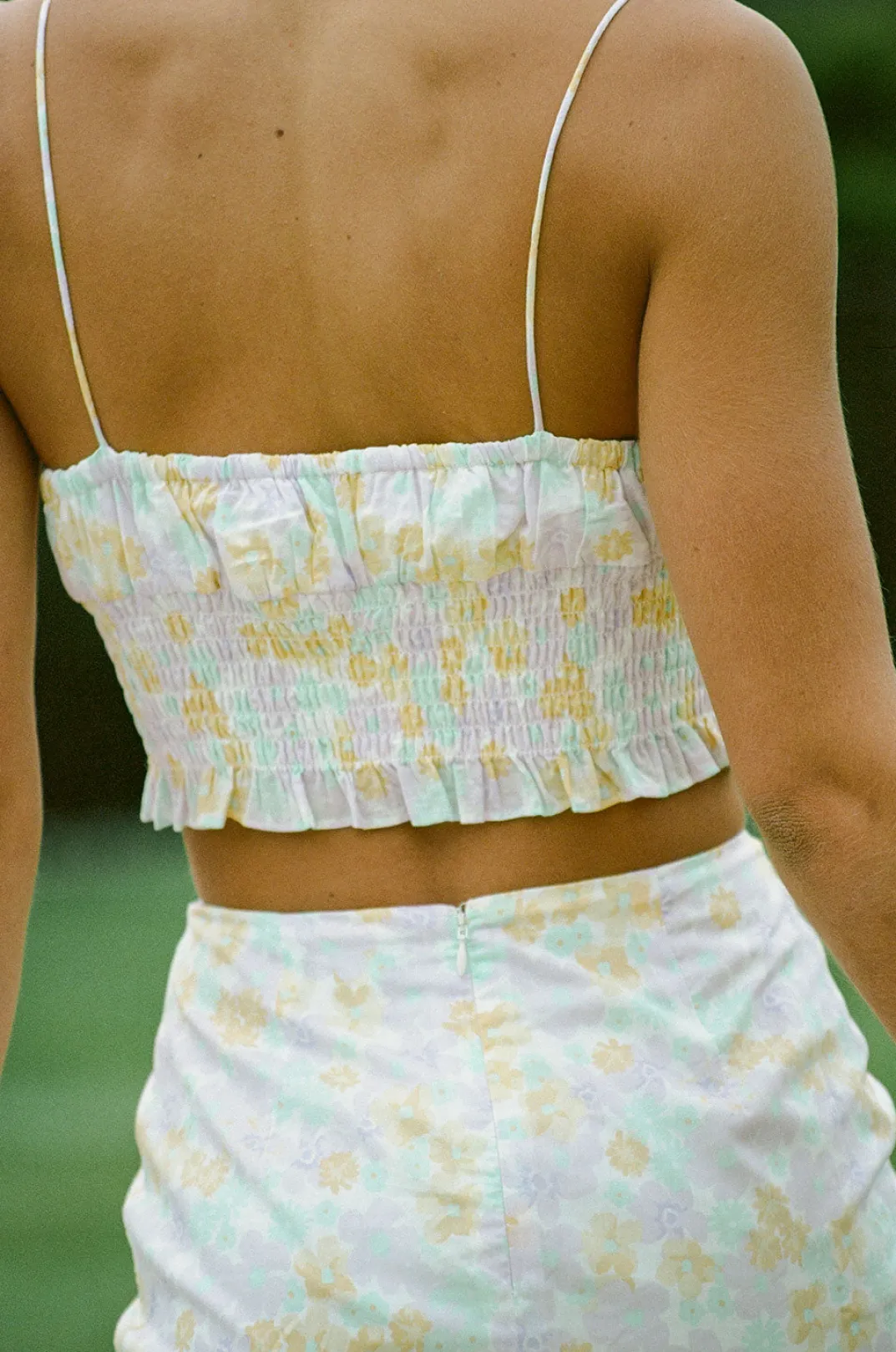 *This Is A Final Sale Item* Wear It As A Set Or Style It With Denim! The Laide Top Is Made From A High Quality Natural Cotton Voile Fabric With Our Exclusive Lavender Field Floral Print. It Is A Cropped Style Featuring Thin Rouleau Straps, Ruffle Trim And Tie Detailing At Neckline, Gathered Bust, Shirred Waist And Frill Across Hem. Get The Look With The Laide Skirt! Designed Exclusively By Sabo.