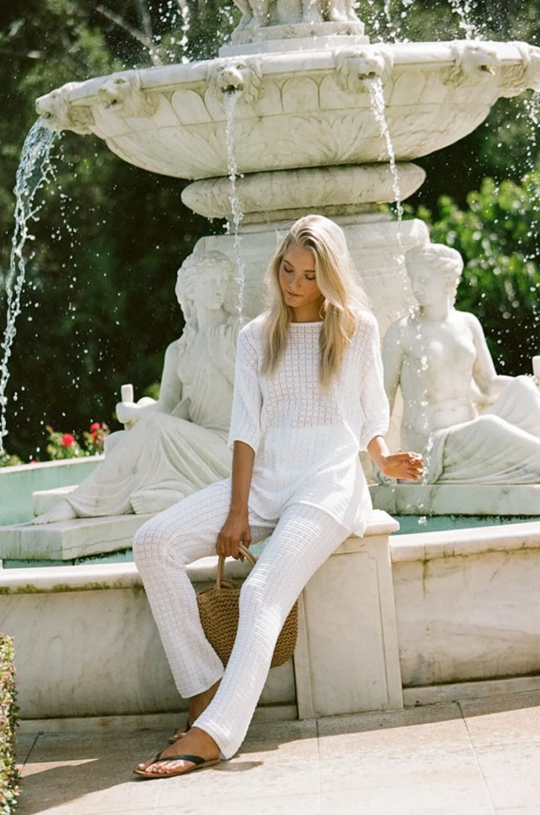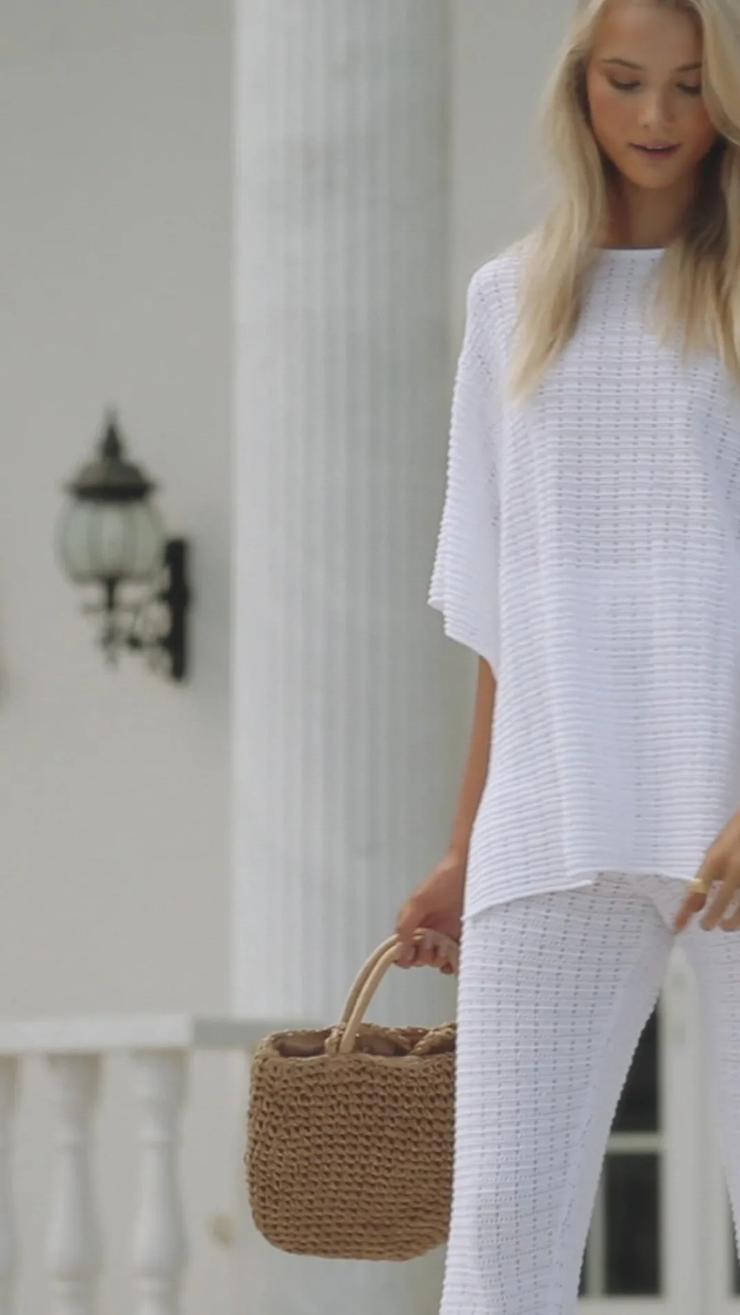 The Super Chic Lait Knit Top Is Made From A High Quality Loose Knit Cotton With A Textured Feel And Square Design. It Is A Boxy Style Featuring Short Relaxed Sleeves, Rounded Neckline, Splits At Sides And Rolled Hem. Get The Look With The Lait Knit Pants And Gold Cross Necklace! Exclusively Designed By Sabo.