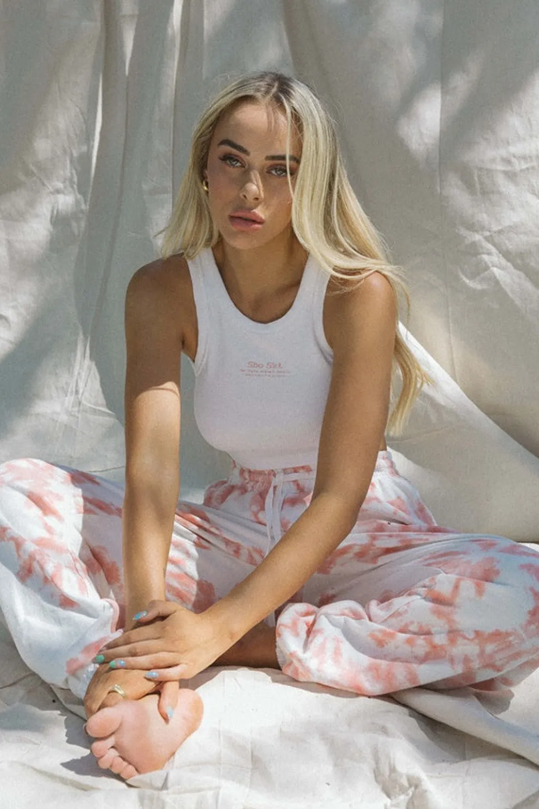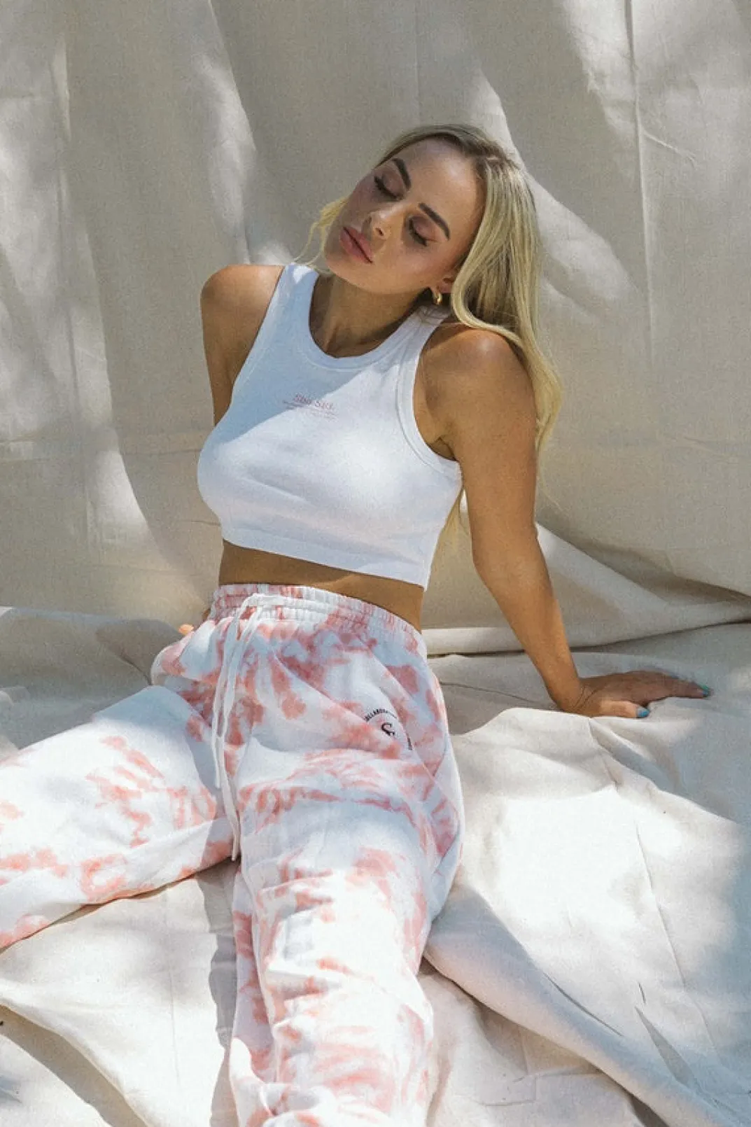 In Collaboration With Em Davies, The Muse Crop Is Made From A High Quality Ribbed Fabric In An Off White Hue. It Is A Cropped Style Featuring A High Neckline And Racer Front And Pink Embroidered Detailing At Centre Front. Pair With The 1060 Sweatpants And Sneakers! Exclusively Designed By Sabo X Em Davies.