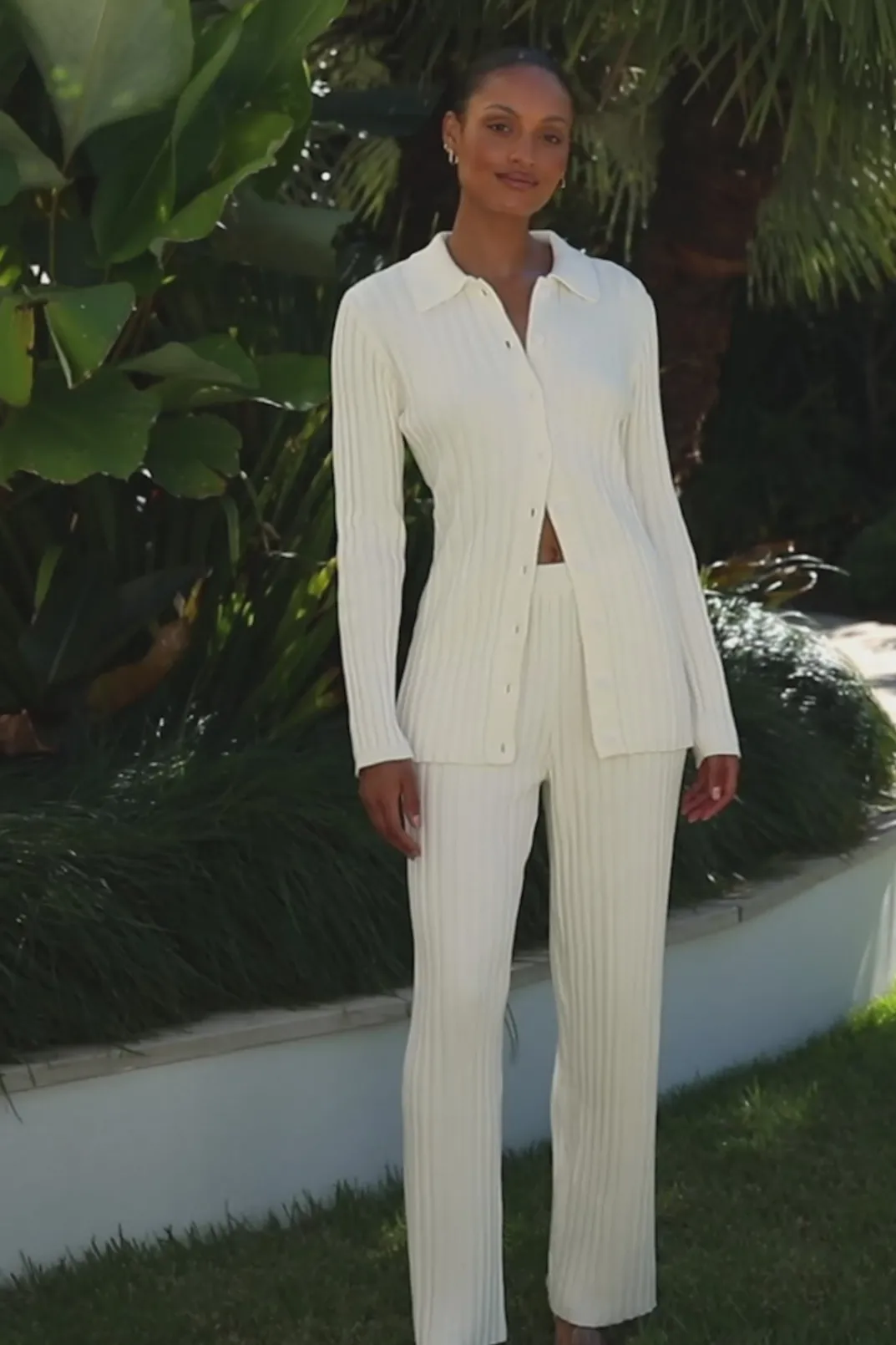 A Winter Must-Have! Thenessi Pants Are Made From A Natural Ribbed Cotton Fabric In White. They Are A High Waisted Style Featuring An Elasticated Waist And Slightly Flared Pants. Style Your Look With The Nessi Top And Peyton Mules! Designed Exclusively By Sabo.