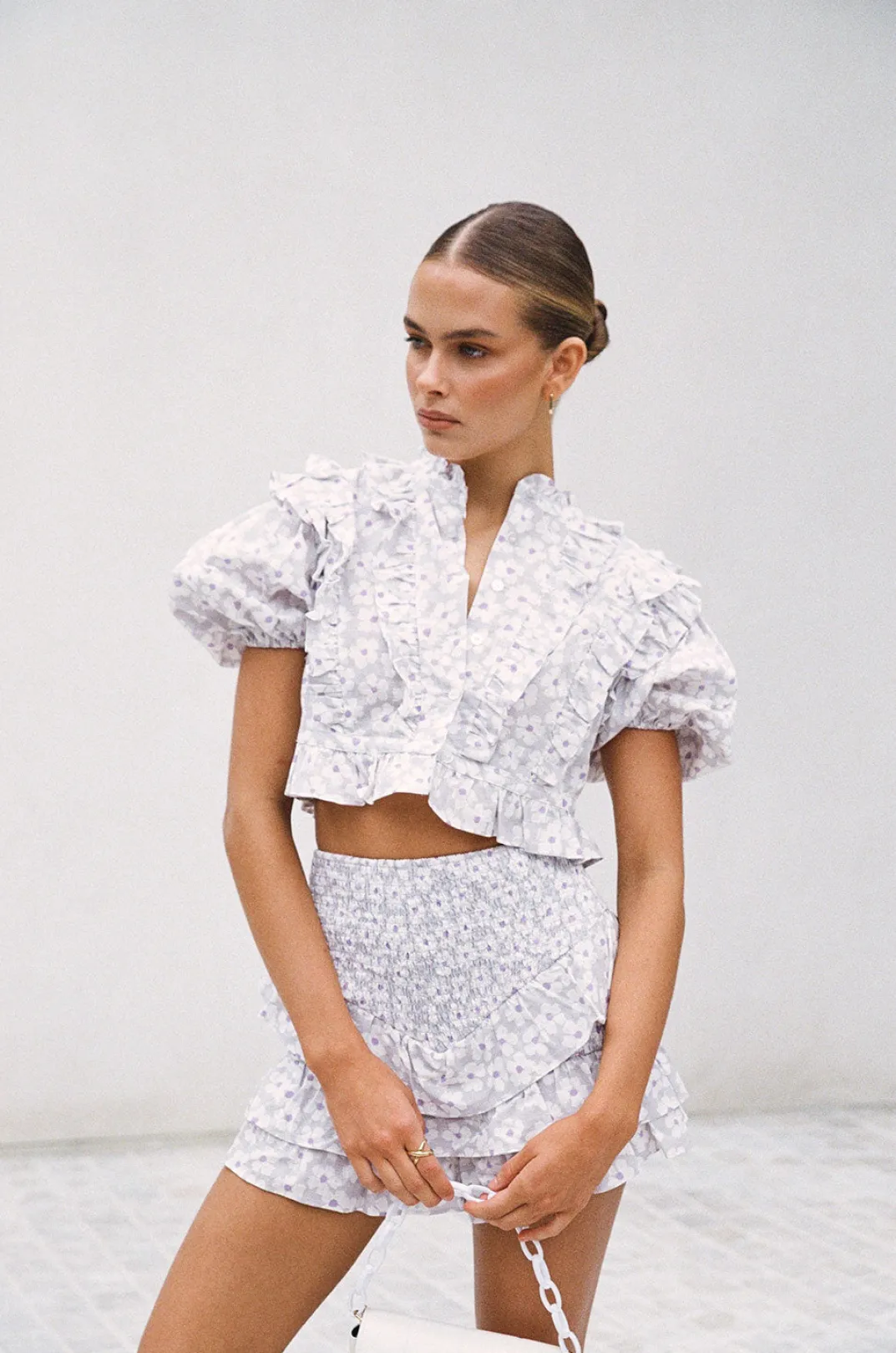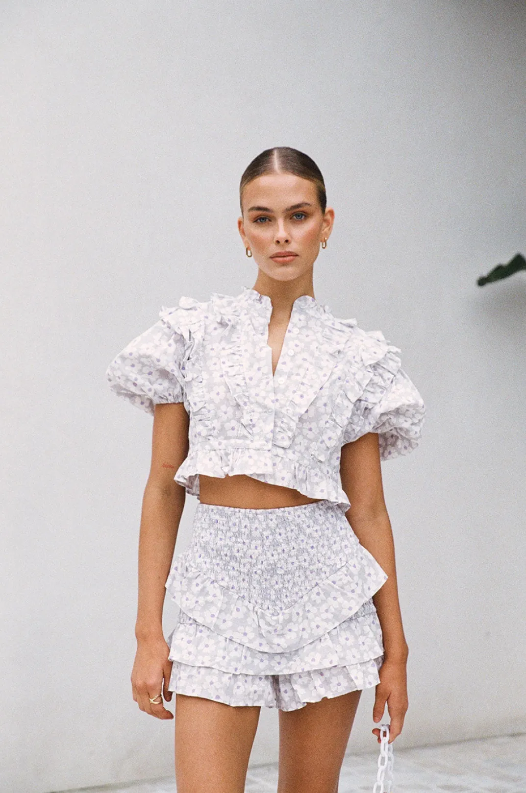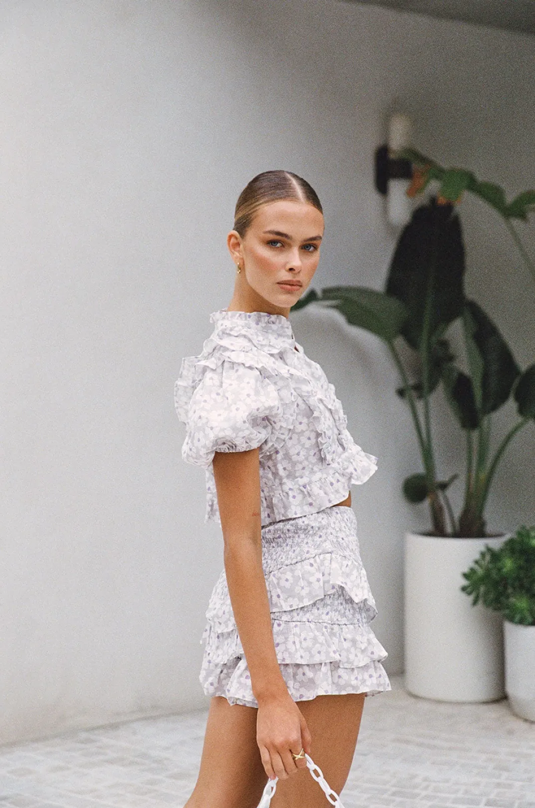 *This Is A Final Sale Item And Cannot Be Returned. See Our Returns Policy Here The Perfect Set For Our Girly Girls! The Nico Shorts Are Made From A Natural Cotton Fabric With Our Exclusive Lilac Daze Floral Print. They Are A High Waisted Style Featuring A Shirred Panel Across Waist With Frill Detailing At Hips And Hems. Pair With The Nico Top For A Super Cute Weekend Look! Designed Exclusively By Sabo.