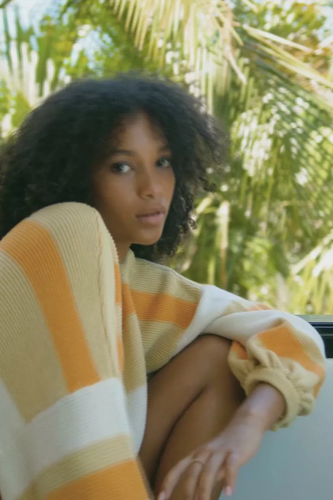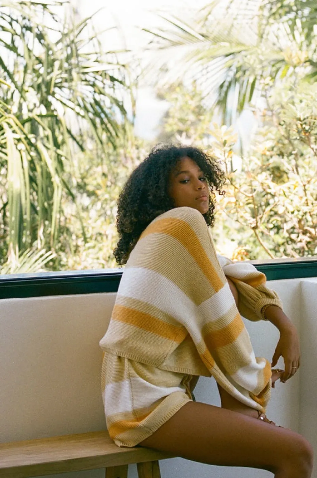 *This Is A Final Sale Item* The Perfect Transeasonal Style In The Cutest Colour Way! The Rufio Knit Top Is Made From A Cosy Cotton Knit In A Dusty Yellow, White And Orange Stripes. It Features Full Length Puff Sleeves, Rounded Neckline And Contrast Ribbed Trims Throughout. Get The Set With The Rufio Knit Shorts! Designed Exclusively By Sabo.