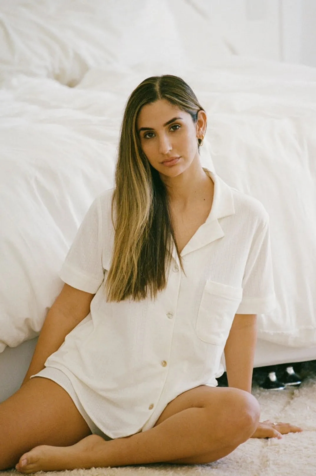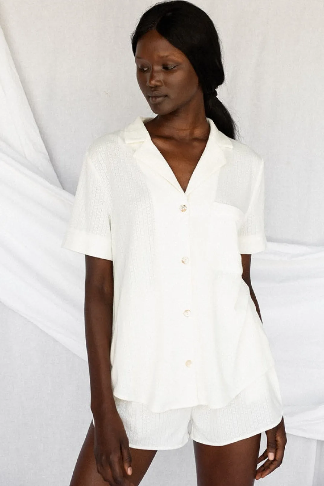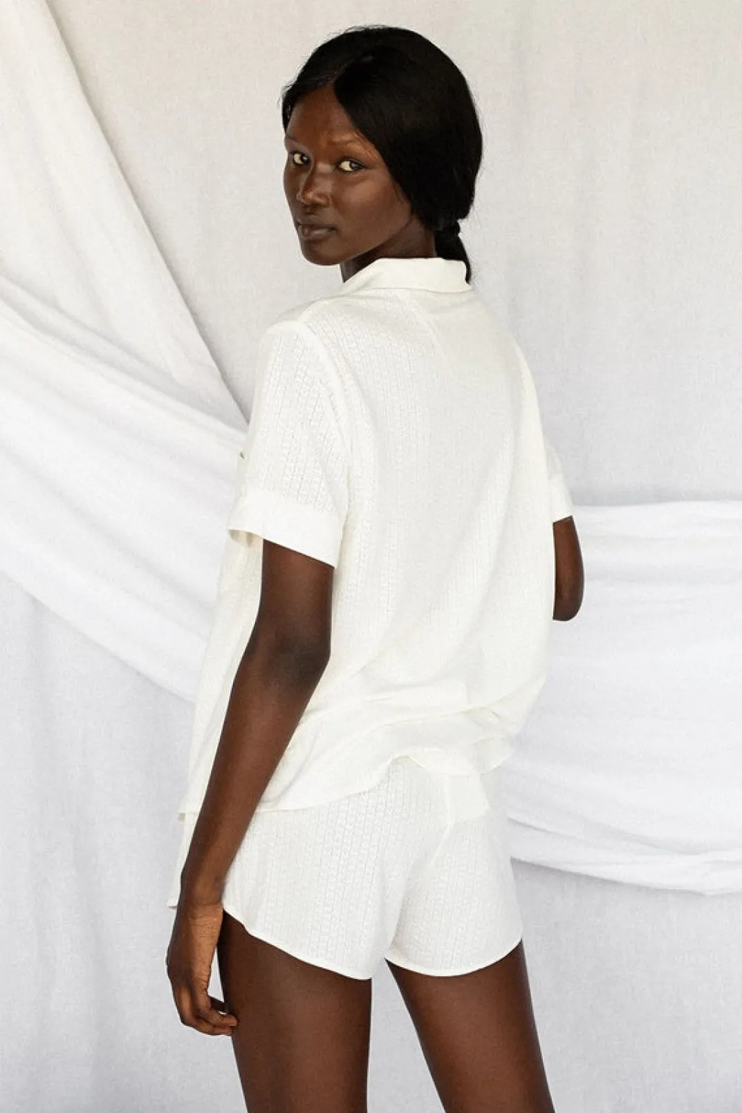*This Is A Final Sale Item* Comfy And Super Cute! The Siesta Pj Shorts Are Made From A Super Soft Pointelle Jersey Fabric In A Light Cream Hue. They Feature An Elasticated Waist With Paperbag Detailing, Twin Pockets, Curved Hems And Slight Splits At Side. Pair With The Siesta Pj Top And Fluffy Slippers! Exclusively Designed By Sabo.