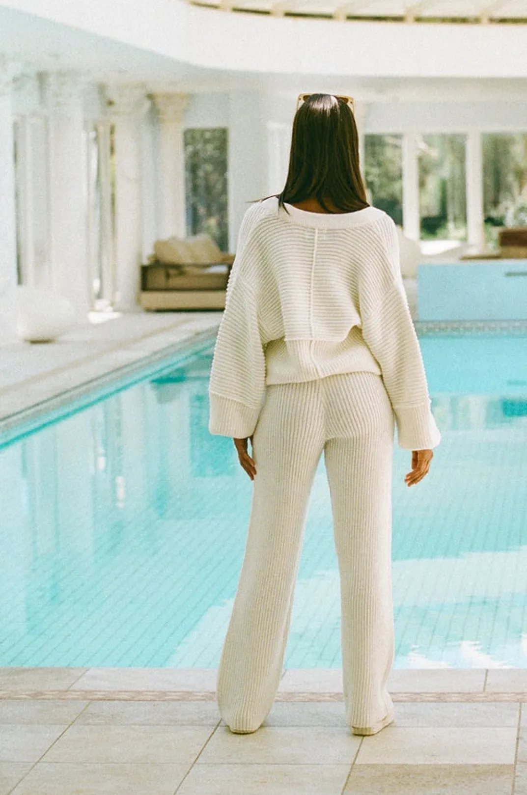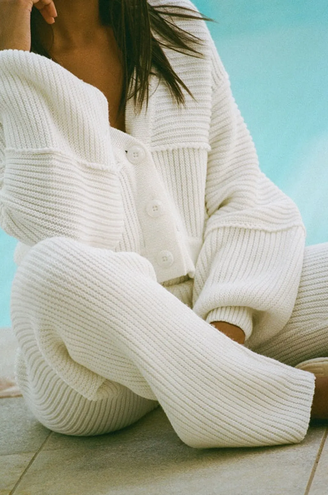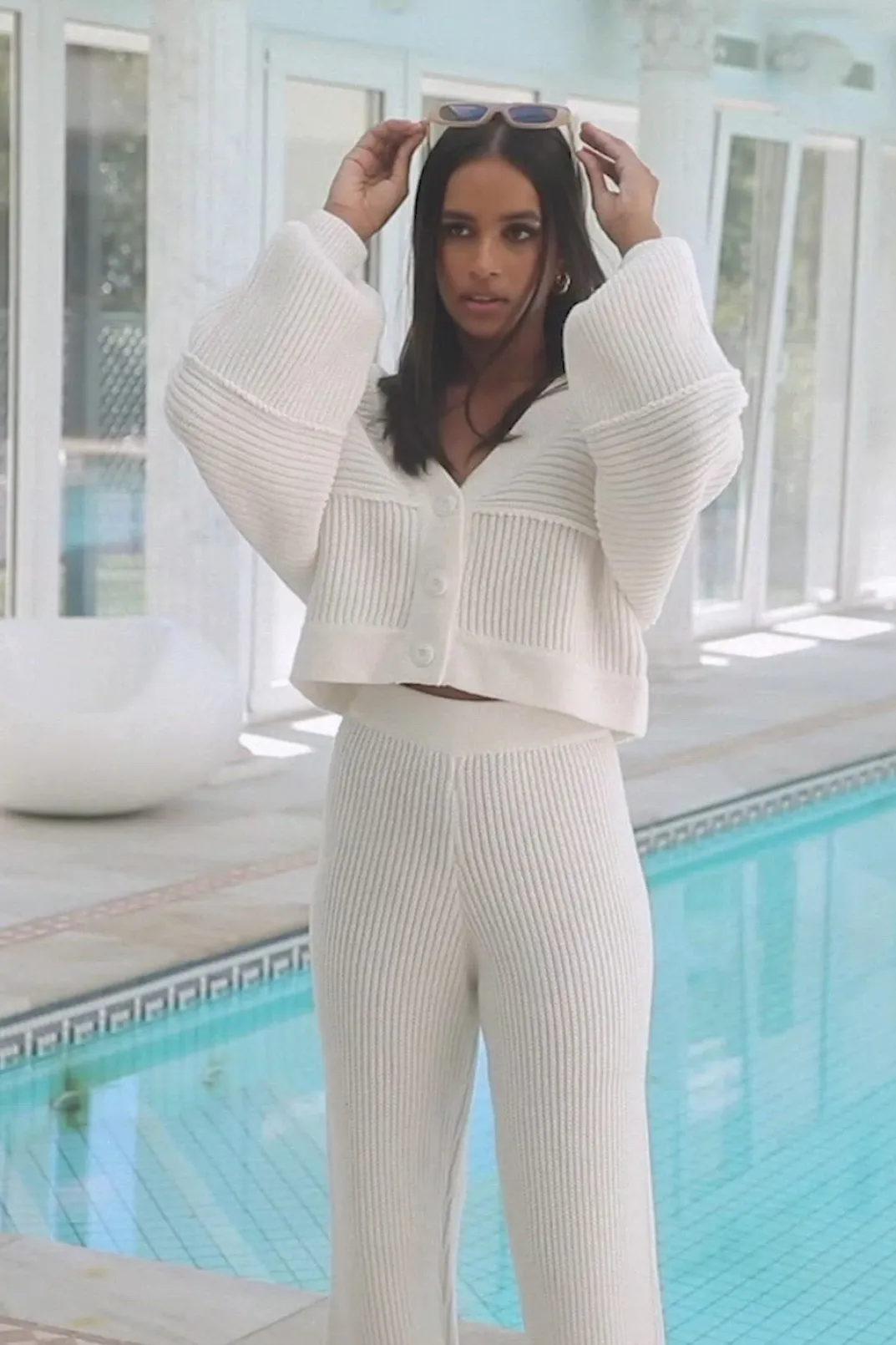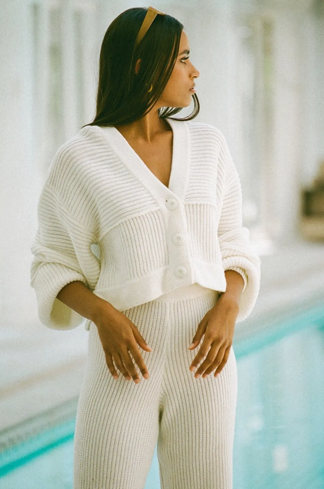 *This Is A Final Sale Item* A Cosy Staple That Can Be Worn All Year Round! The Taite Cardi Is Made From A Soft Knit In An Off White Hue. It Features Contrast Rib Detailing, V Neckline And Buttons At Centre Front. Get The Look With The Taite Pants! Designed Exclusively By Sabo.