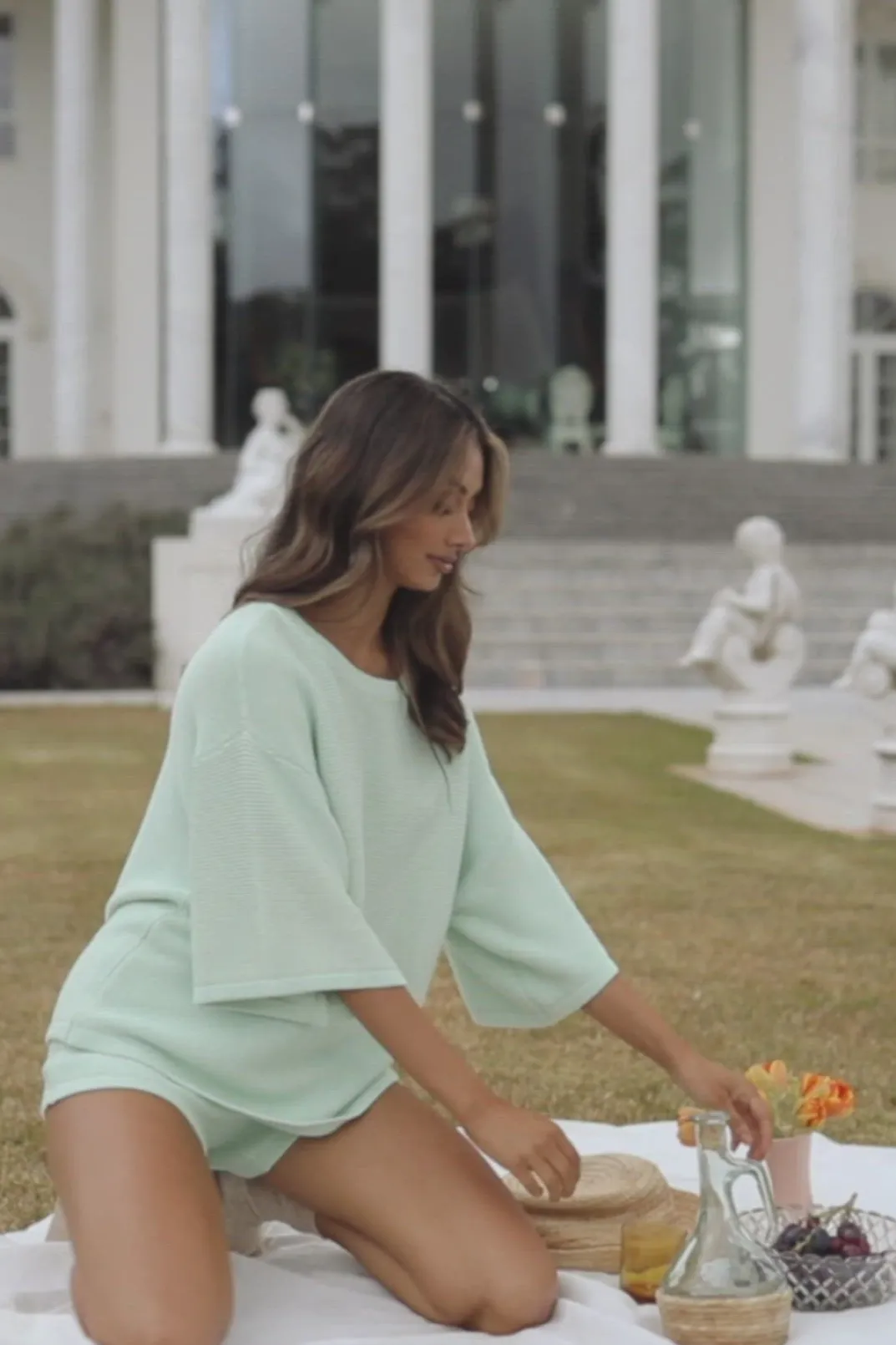 *This Is A Final Sale Item* A Basic Go-To Set In A High Quality Natural Cotton Knit! It Features A Rounded Neckline, Relaxed 1/2 Length Sleeves And Contrast Ribbed Trims. Get The Look And Pair With The Telisa Shorts And Oro Ruched Baguette Bag! Exclusively Designed By Sabo.