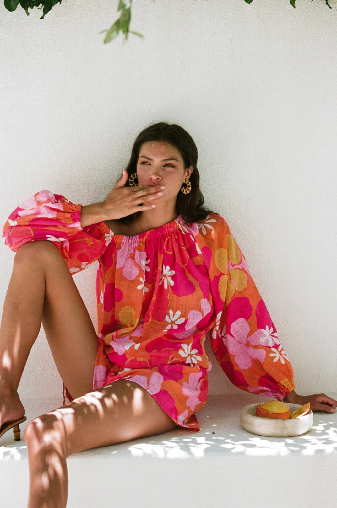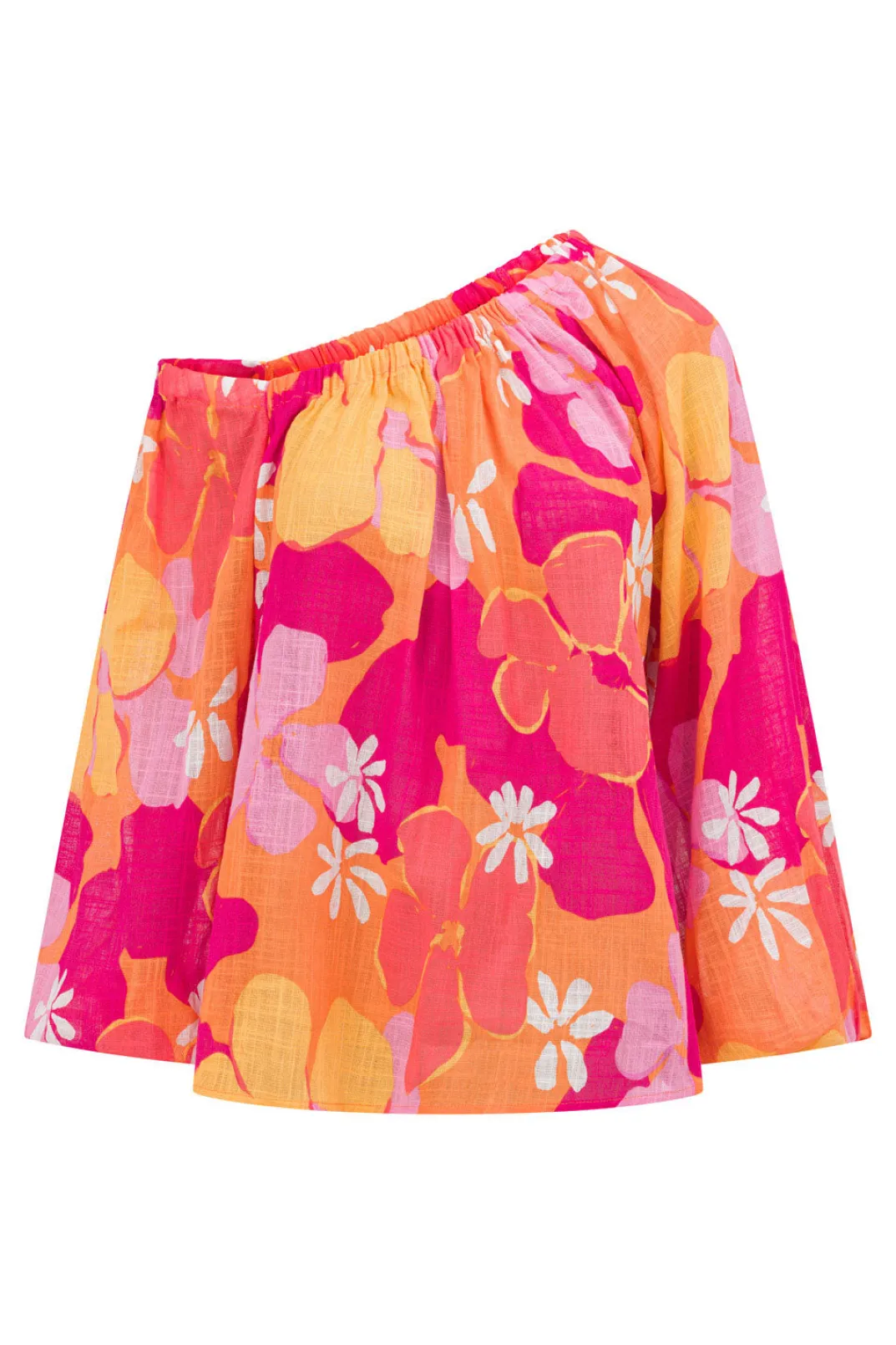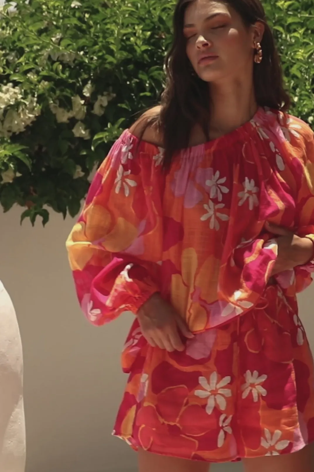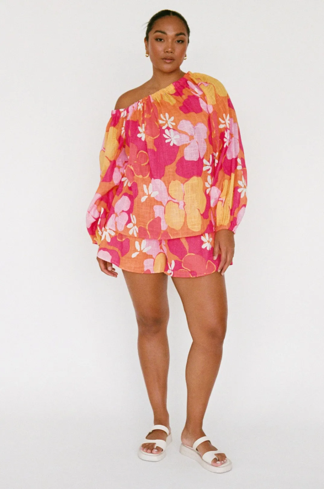 Add Some Spice To Your Life With Our New Exclusive Remi Sunset Print! The Tierra Top Is Made From A Stunning Natural Lightweight Cheesecloth Cotton Fabric And Features Full Length Puff Sleeves, Asymmetric Elastic Neckline And Relaxed Fit. Get The Look With The Tierra Shorts! Designed Exclusively By Sabo.