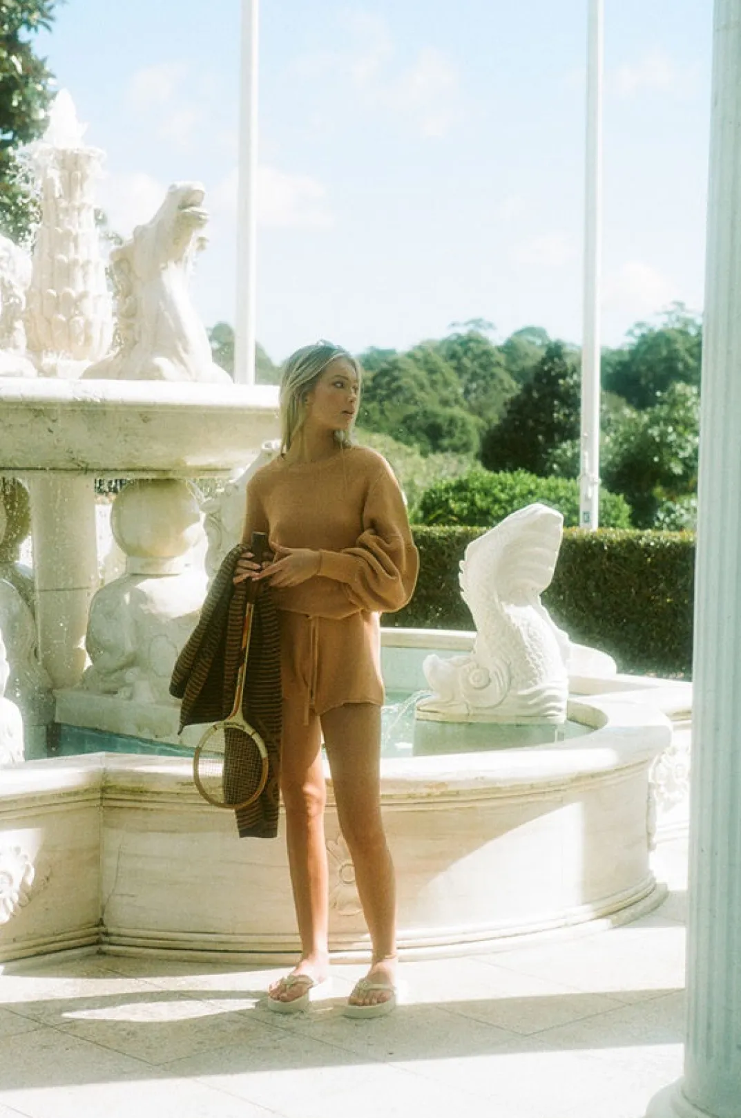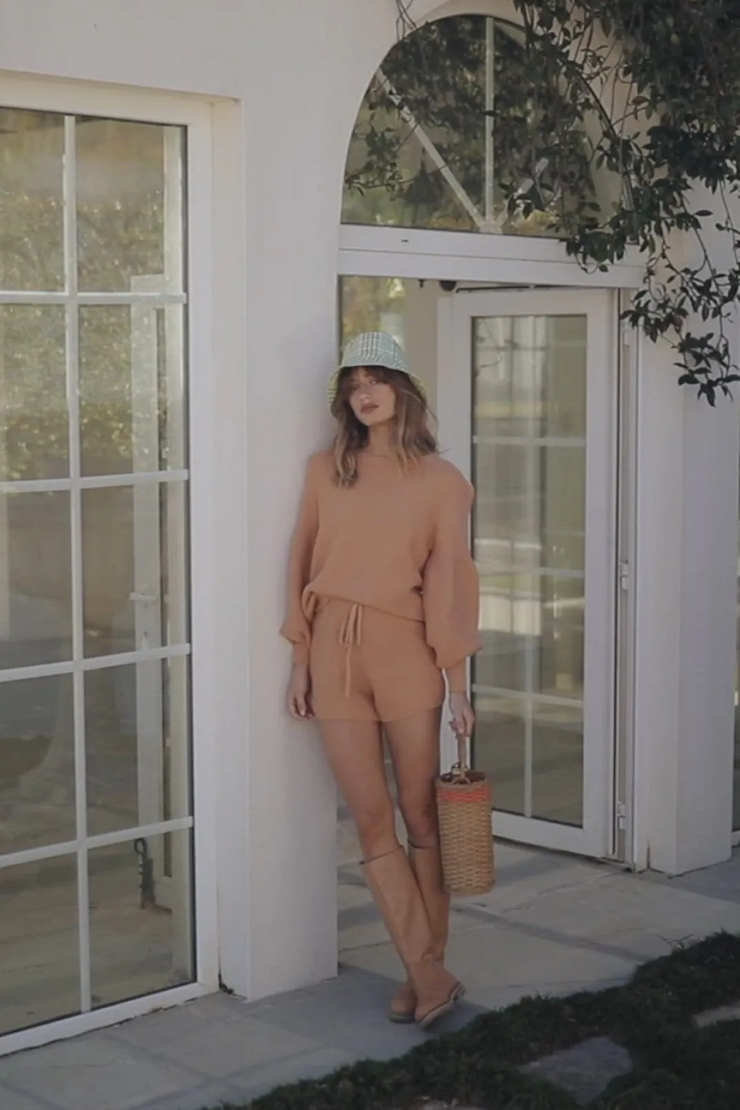 *This Is A Final Sale Item* Our Signature Shape In An Easy-To-Wear Colourway! The Toffee Knit Shorts Are Made From A Soft Natural Cotton Knit In A Tan Hue. They Are A High Waisted Style Featuring An Elasticated Waist With Drawstring, Ribbed Waist And Hem Detailing And High-Low Hems. Get The Look And Pair With The Toffee Knit Top And Jera Sunglasses! Designed Exclusively By Sabo.