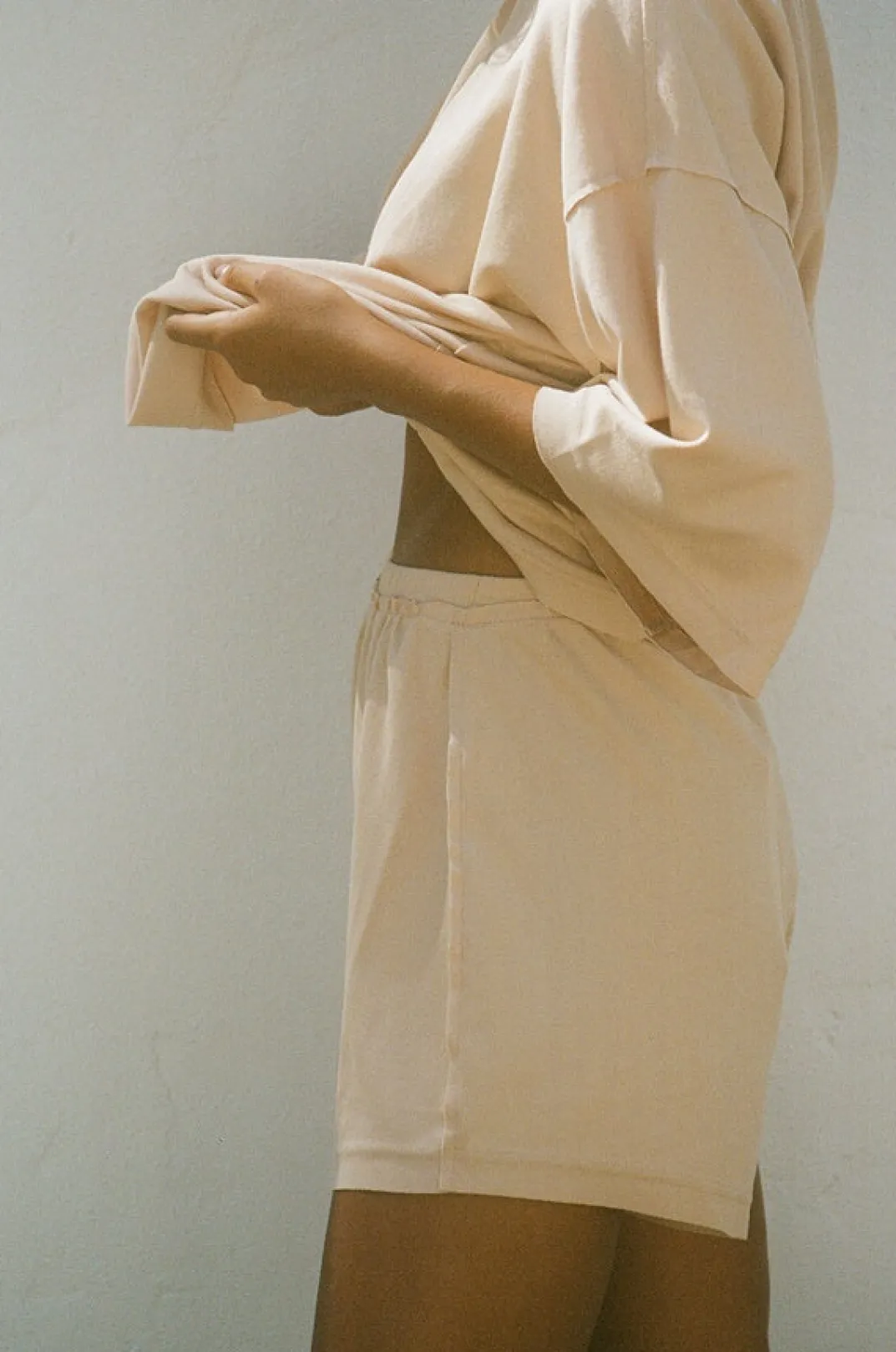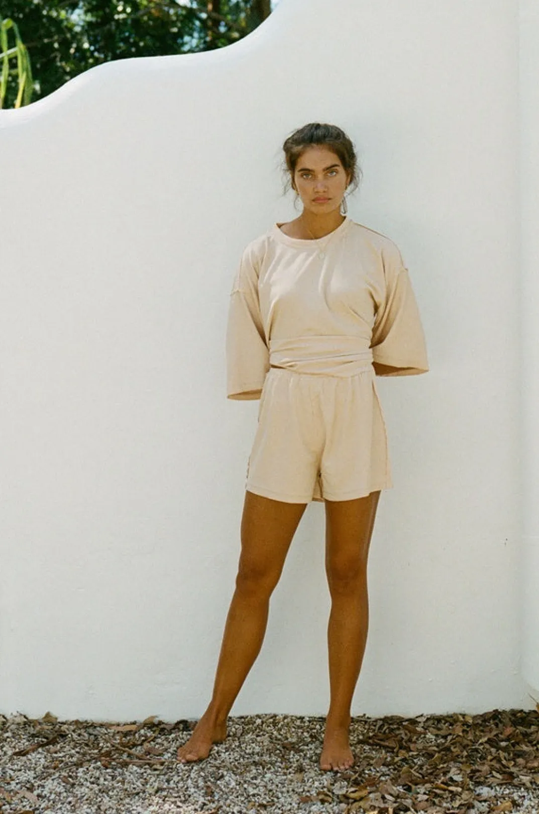 *This Is A Final Sale Item* Your Favourite Basic Style In An Easy-To-Wear Colour! The Wanderer Shorts Are Made From A Soft Slinky Fabric In A Beige Hue. They Are A High Waisted Style Featuring An Elasticated Waist, High-Low Hems And Raw Cut Edges. Get The Look And Pair With The Wanderer Tee, Soft Scrunchie And Round Bamboo Bag! Exclusively Designed By Sabo.