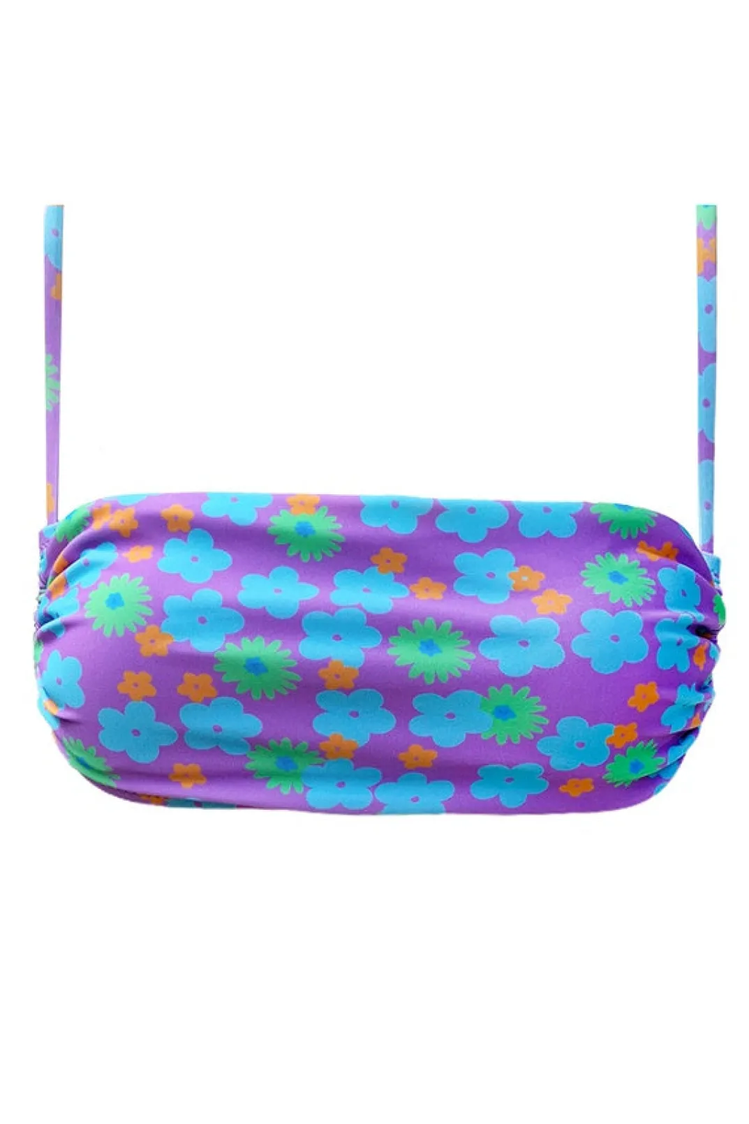 *This Is A Final Sale Item And Cannot Be Returned. See Our Returns Policy Here A Print, Colour Way And Design Combo Of Our Dreams! The Azalea Bandeau Top Is Made From A High Quality Stretchy Swim Fabric With Our Exclusive Purple Retro Floral Print. It Features An Adjustable Draw Side Bandeau At Front With Adjustable Straps With A Tie At Back. Pair With The Azalea Tie Bottoms, Purple Retro Floral Scrunchie And Purple Breeze Cover Up! Designed Exclusively By Sabo.