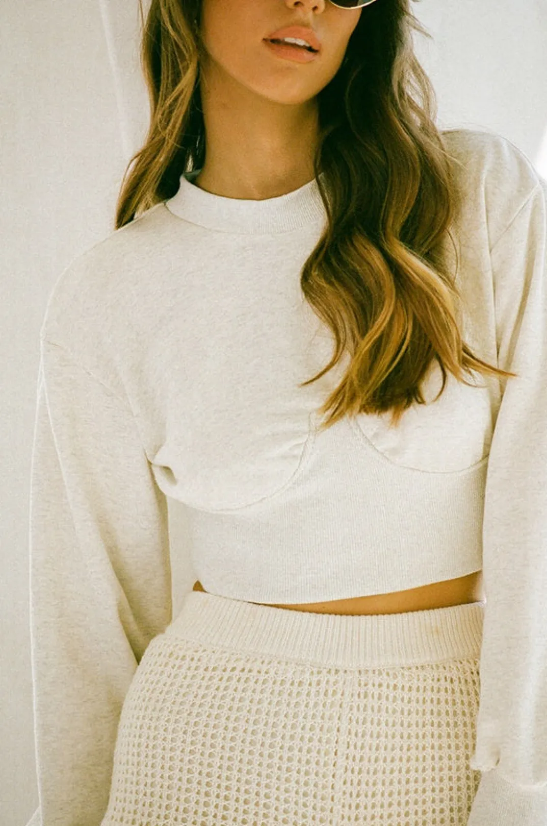 *This Is A Final Sale Item* Comfort Meets Style With The Allara Top! It Is Made From A Sweater Fabric In A Marl Grey Hue And Features Contrast Rib Detailing At Neckline, Cuffs And Waist, Underwire Design Detail And Full Length Sleeves. Pair With High Waisted Denim! Designed Exclusively By Sabo.